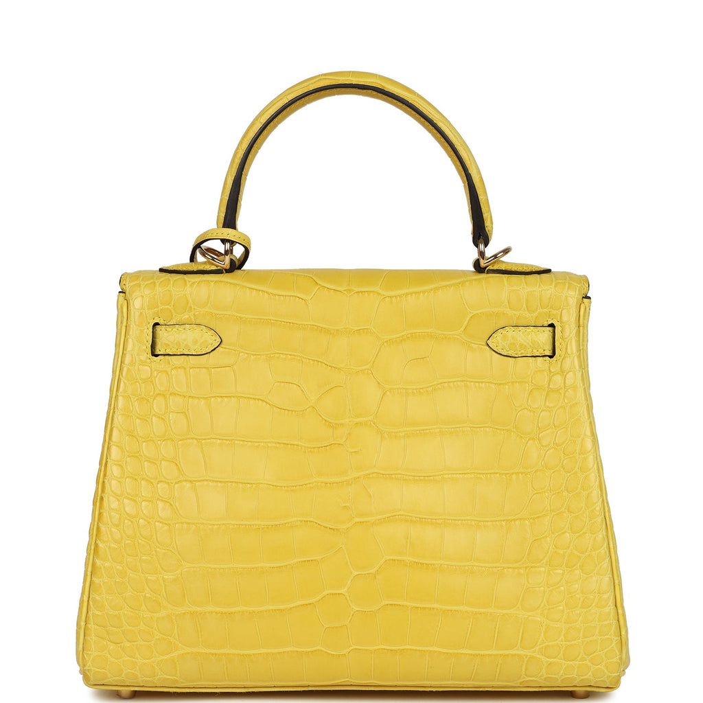Hermes Kelly Retourne 25 Mimosa Matte Alligator Permabrass Hardware Shop for an authentic Hermes Kelly 25 in Mimosa Matte Alligator Mississippiensis with permabrass hardware in new and never worn condition at Madison Avenue Couture.