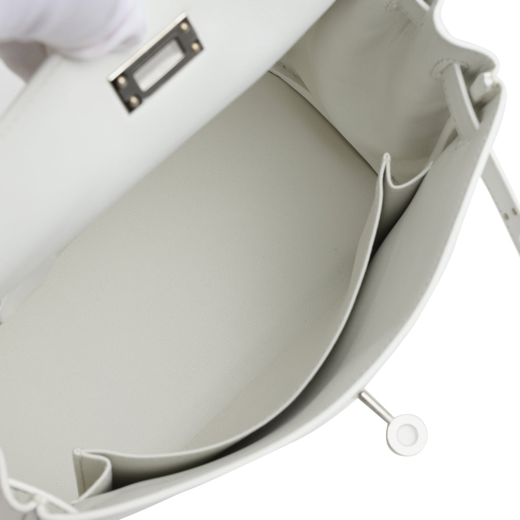 Hermes Kelly Retourne 25 New White Swift Palladium Hardware