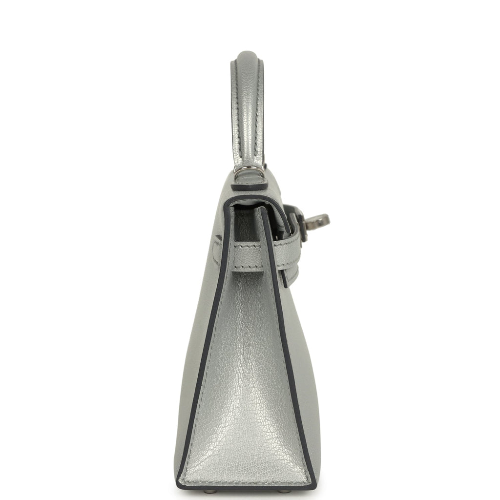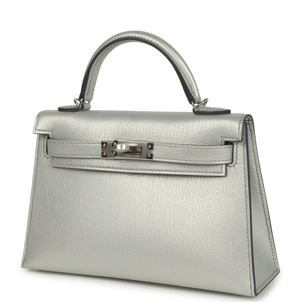 Hermes Kelly Sellier 20 Argent Chevre Chamkilight Palladium Hardware Shop for an authentic Hermes Kelly Sellier 20 in Argent Chevre Chamkilight leather with palladium hardware in new and never worn condition at Madison Avenue Couture.