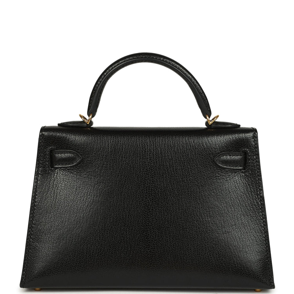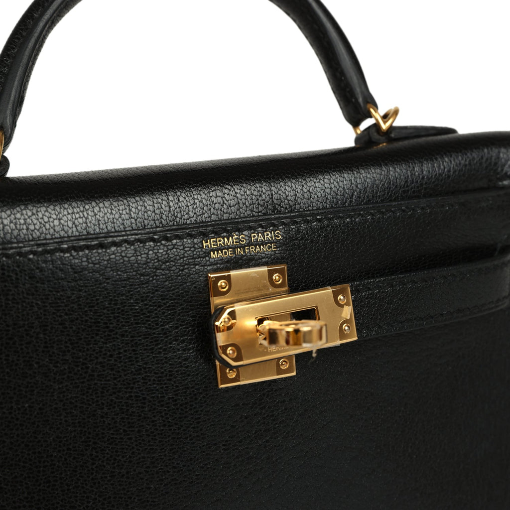 Hermes Kelly Sellier 20 Black Chevre Mysore Gold Hardware