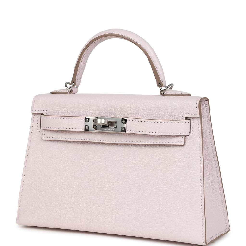 Hermes Kelly Sellier 20 Mauve Pale Chevre Palladium Hardware Shop for an authentic Hermes Kelly Sellier 20 in Mauve Pale chèvre leather with palladium hardware in new and never worn condition at Madison Avenue Couture.