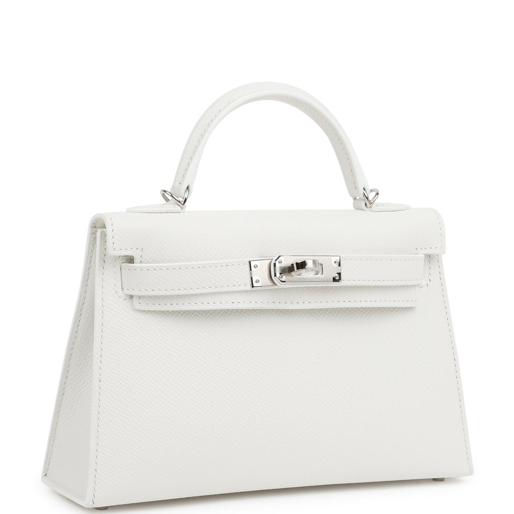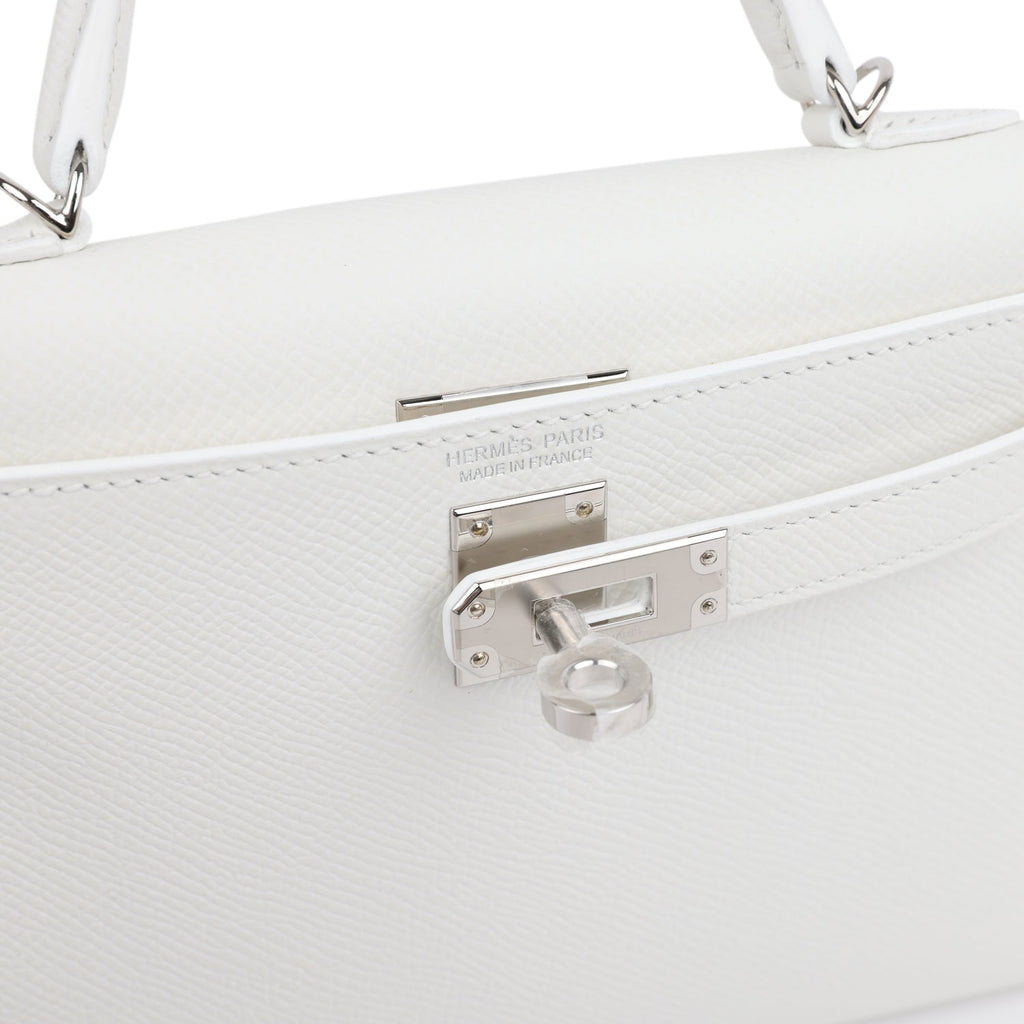 Hermes Kelly Sellier 20 New White Epsom Palladium Hardware Shop for an authentic Hermes Kelly Sellier in New White epsom leather with palladium hardware in new and never worn condition at Madison Avenue Couture.