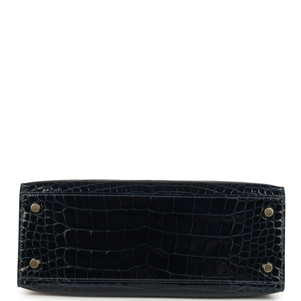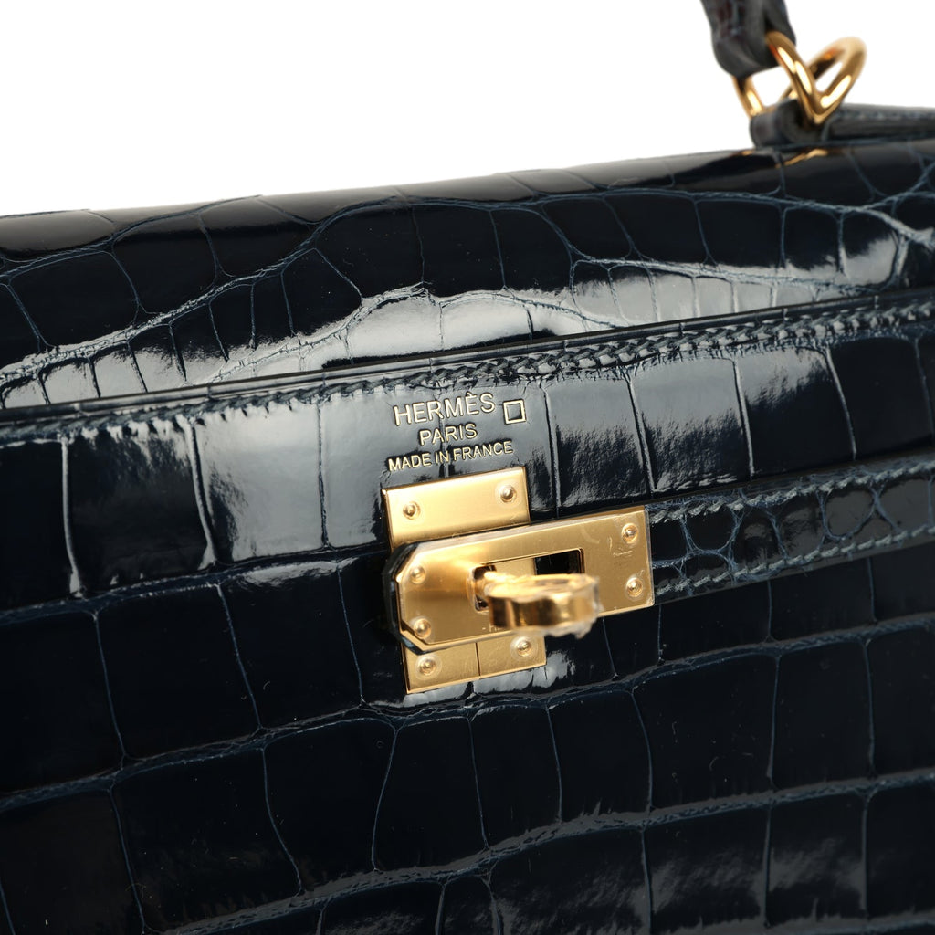Hermes Kelly Sellier 25 Bleu Baltique Shiny Alligator Gold Hardware