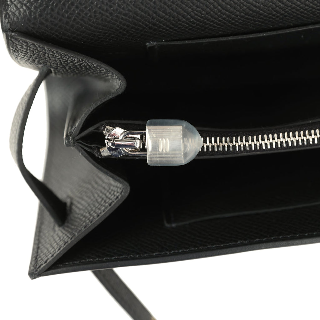 Hermes Kelly Wallet To Go Black Epsom Palladium Hardware Shop for an authentic Hermes Kelly Wallet To Go in Black epsom leather with palladium hardware in new and never worn condition at Madison Avenue Couture.