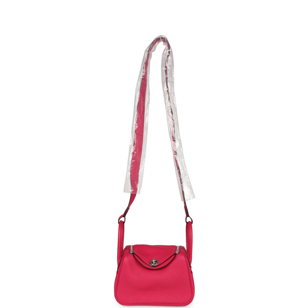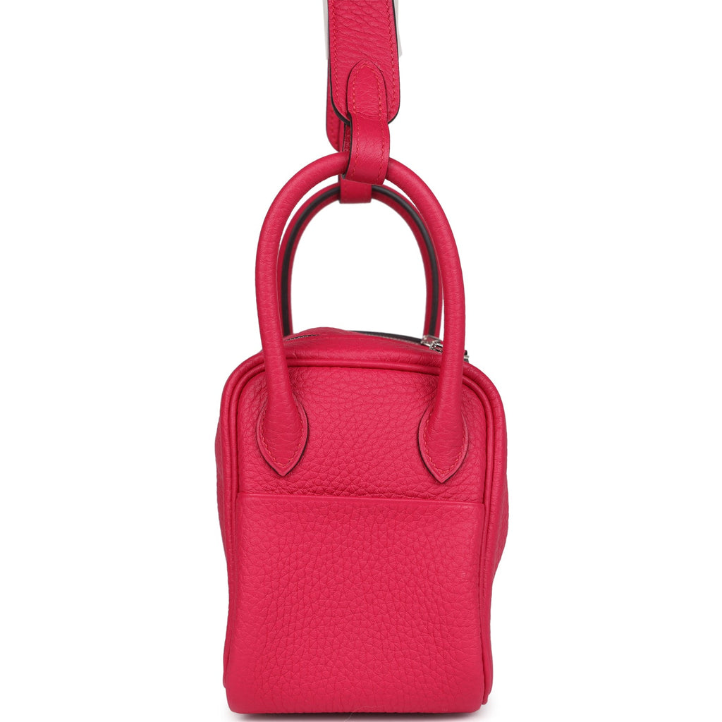 Hermes Mini Lindy Framboise Clemence Palladium Hardware Shop for an authentic Hermes Mini Lindy in Framboise clemence leather with palladium hardware in new and never worn condition at Madison Avenue Couture.
