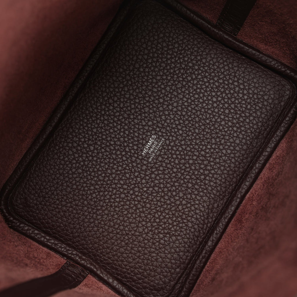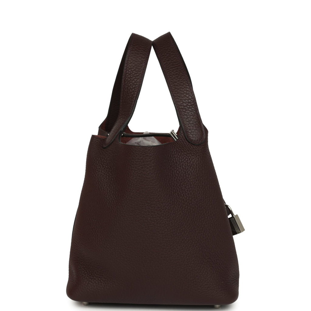 Hermes Picotin Lock 18 Rouge Sellier Clemence Palladium Hardware Shop for an authentic Hermes Picotin Lock 18 in Rouge Sellier clemence leather with palladium hardware in new and never worn condition at Madison Avenue Couture.