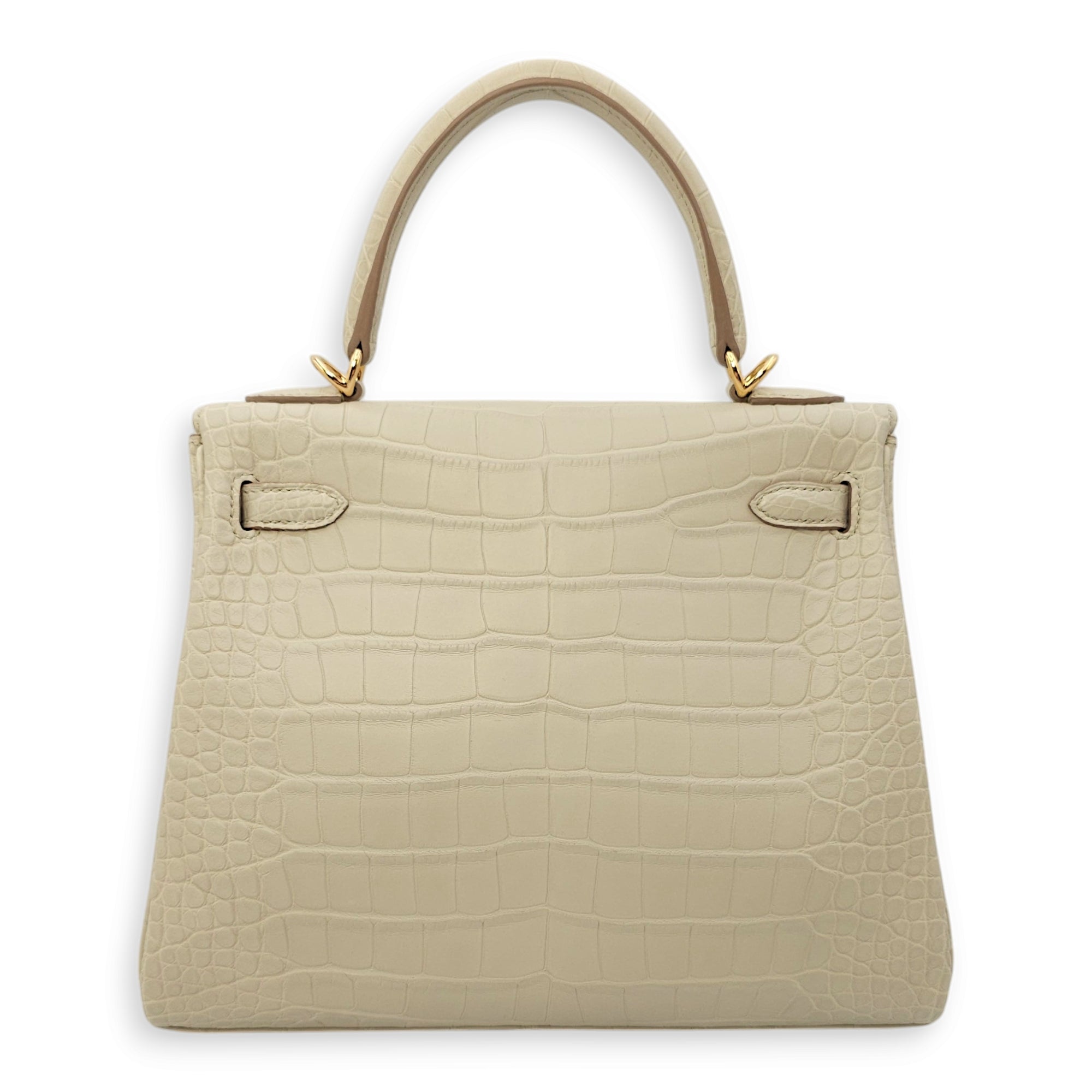 Kelly 25 Beton in Matte Alligator, Gold hardware
