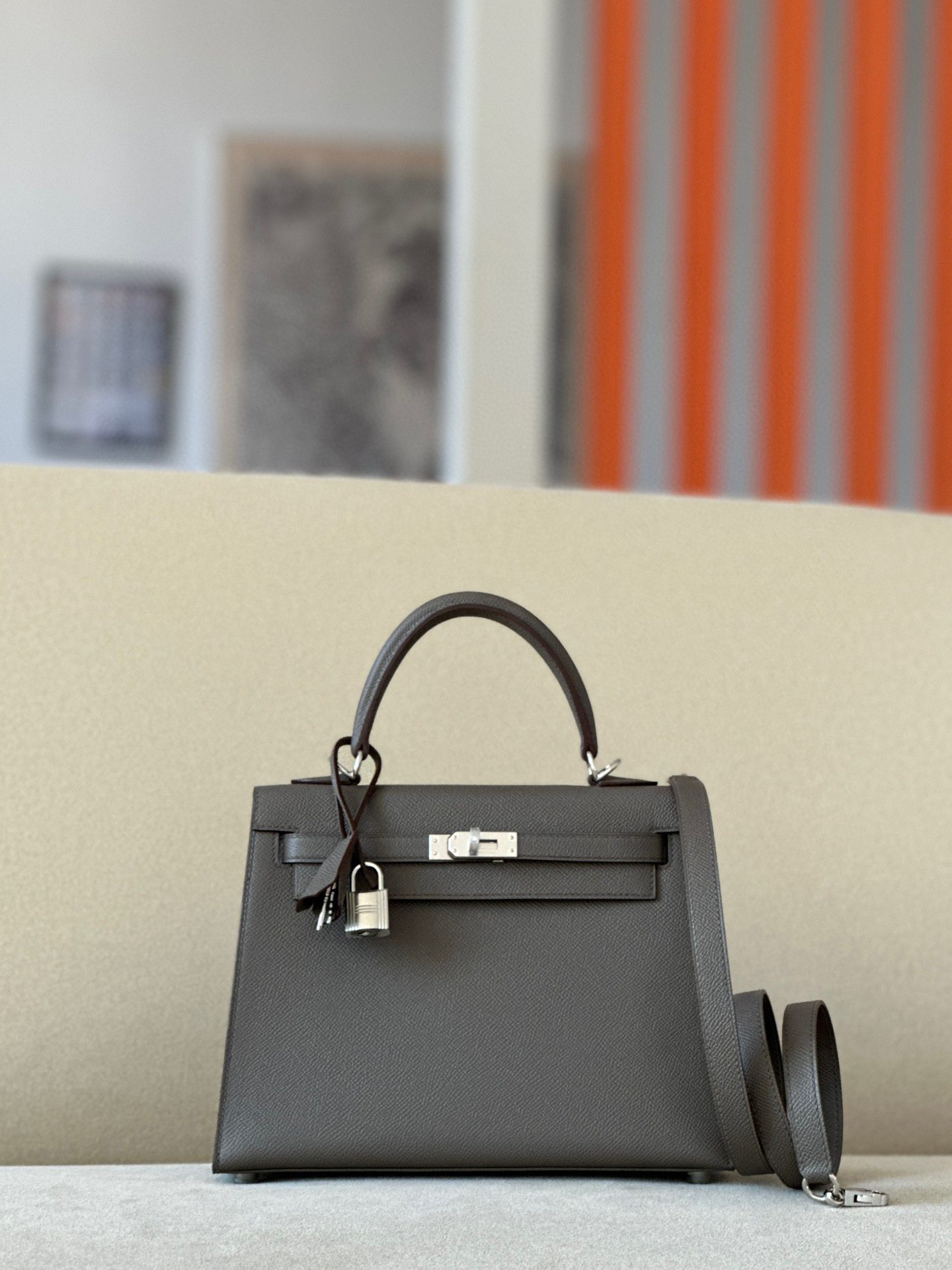 Kelly 25 Epsom Etain (8F) Palladium Hardware