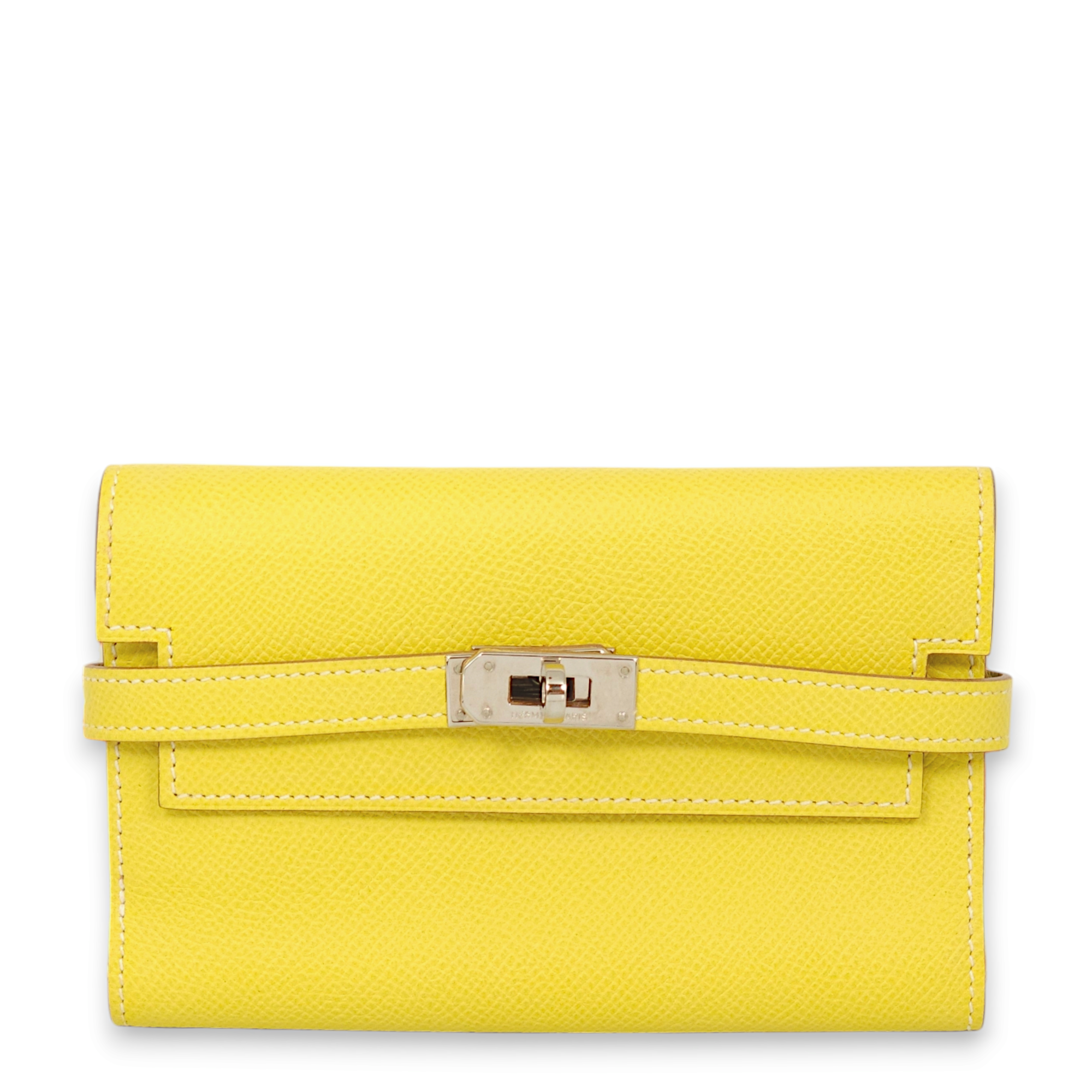 Kelly Depliant Lime/ Gris Perle Wallet in Epsom, Palladium hardware