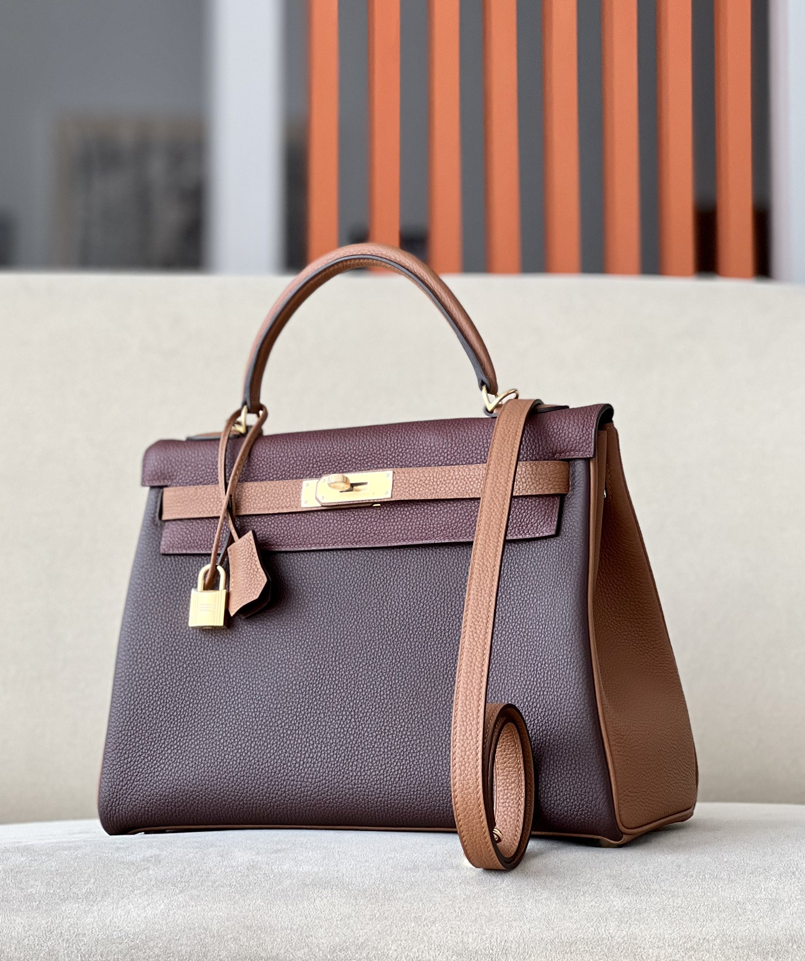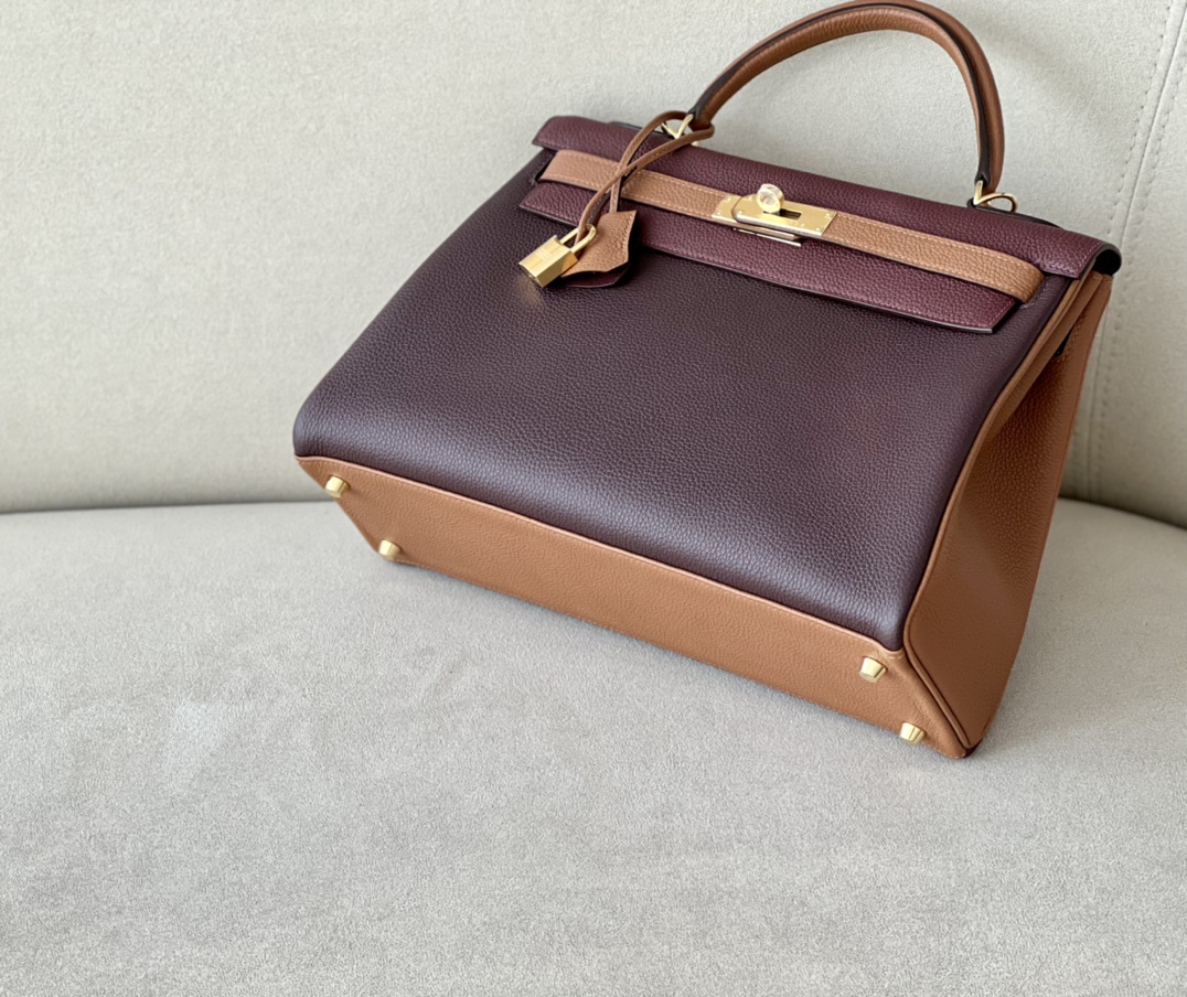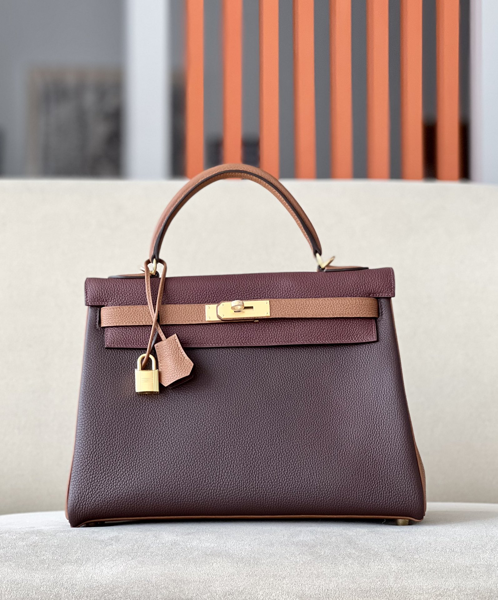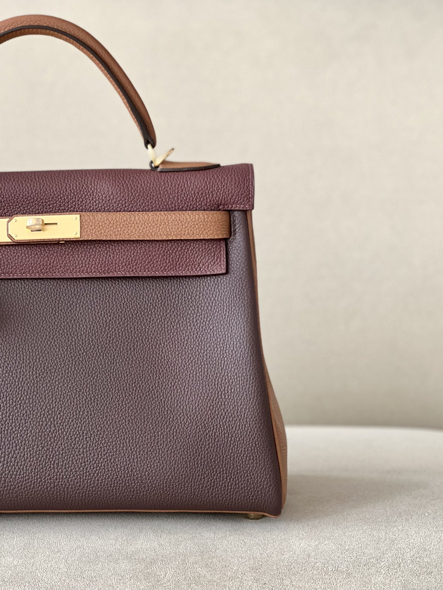 Kelly HSS 32 Togo Havanne (41) ,Bourgogne(F5) and Gold(37) Gold Hardware
