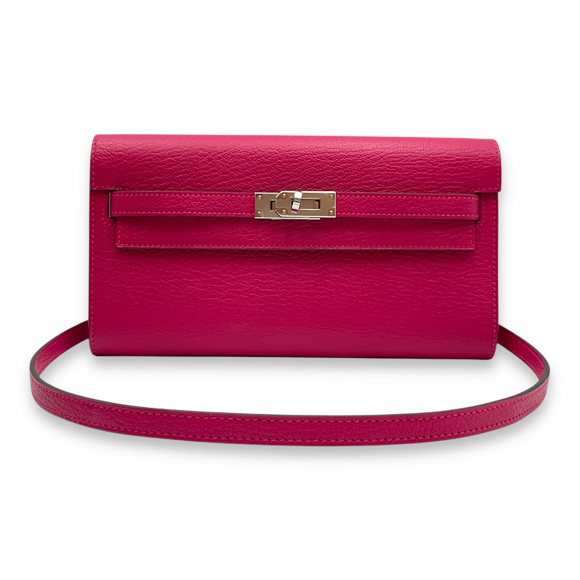 Kelly To Go Rose Mexico Crossbody Bag in Chevre Mysore, Palladium hardware