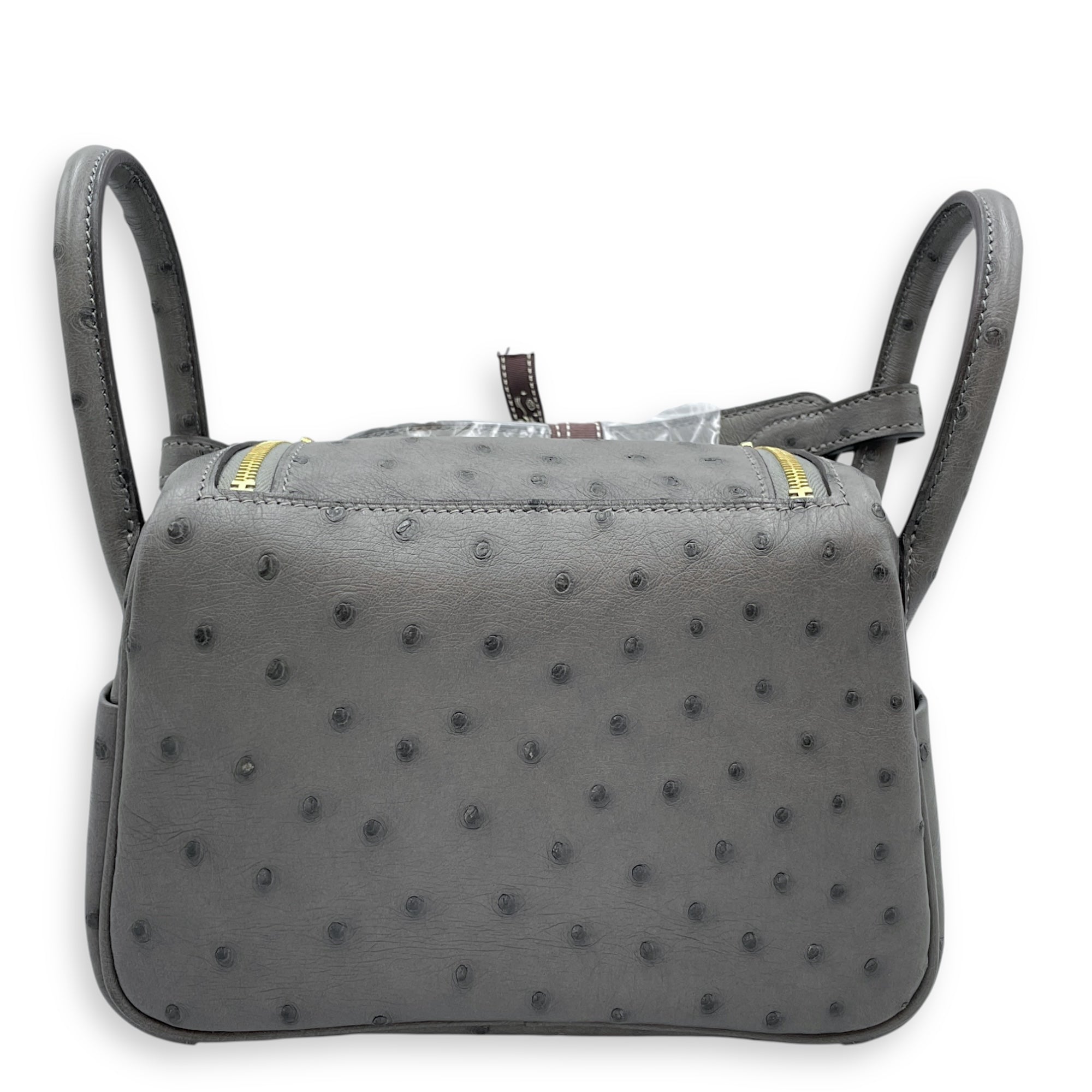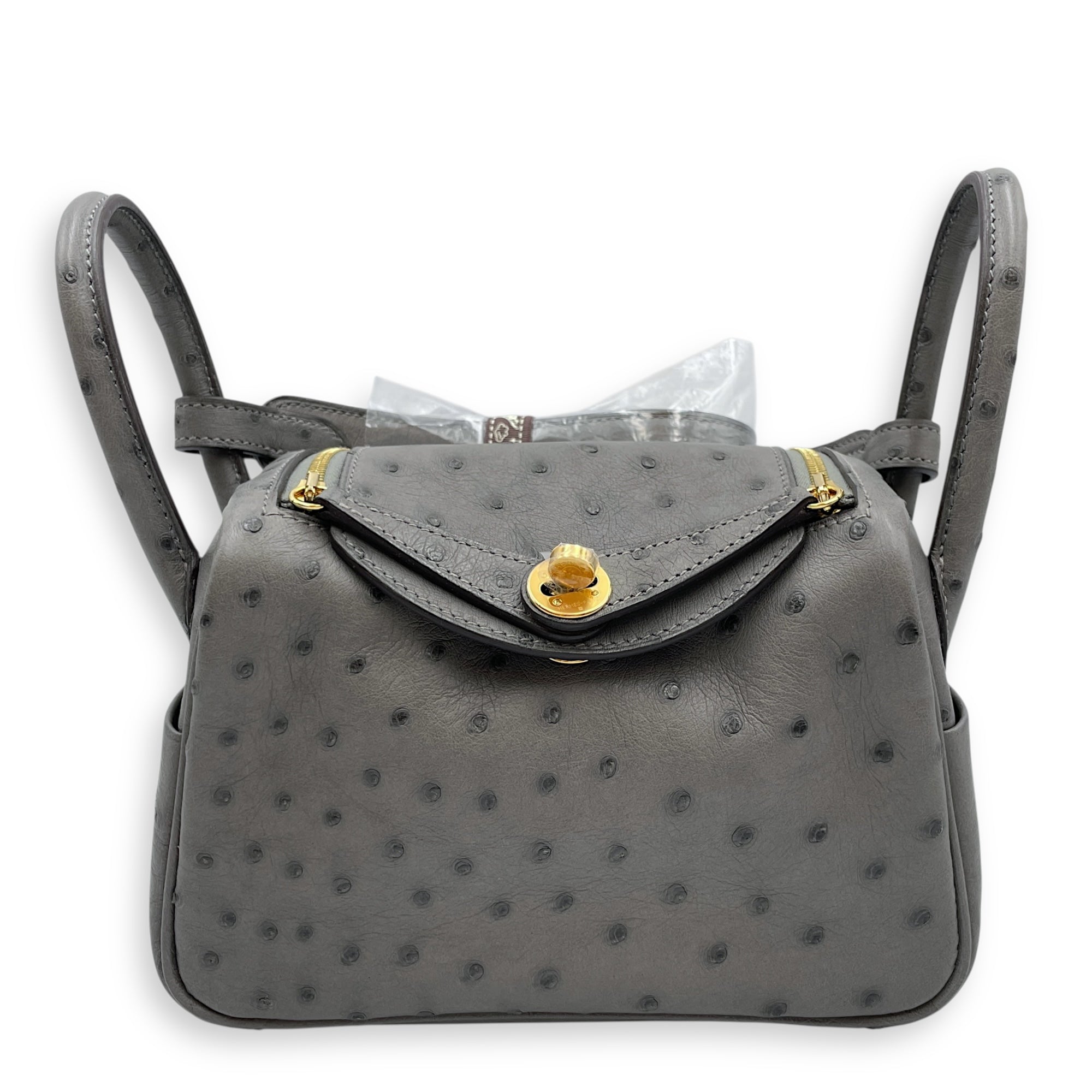 Lindy II Mini Gris Meyer in Ostrich, Gold hardware