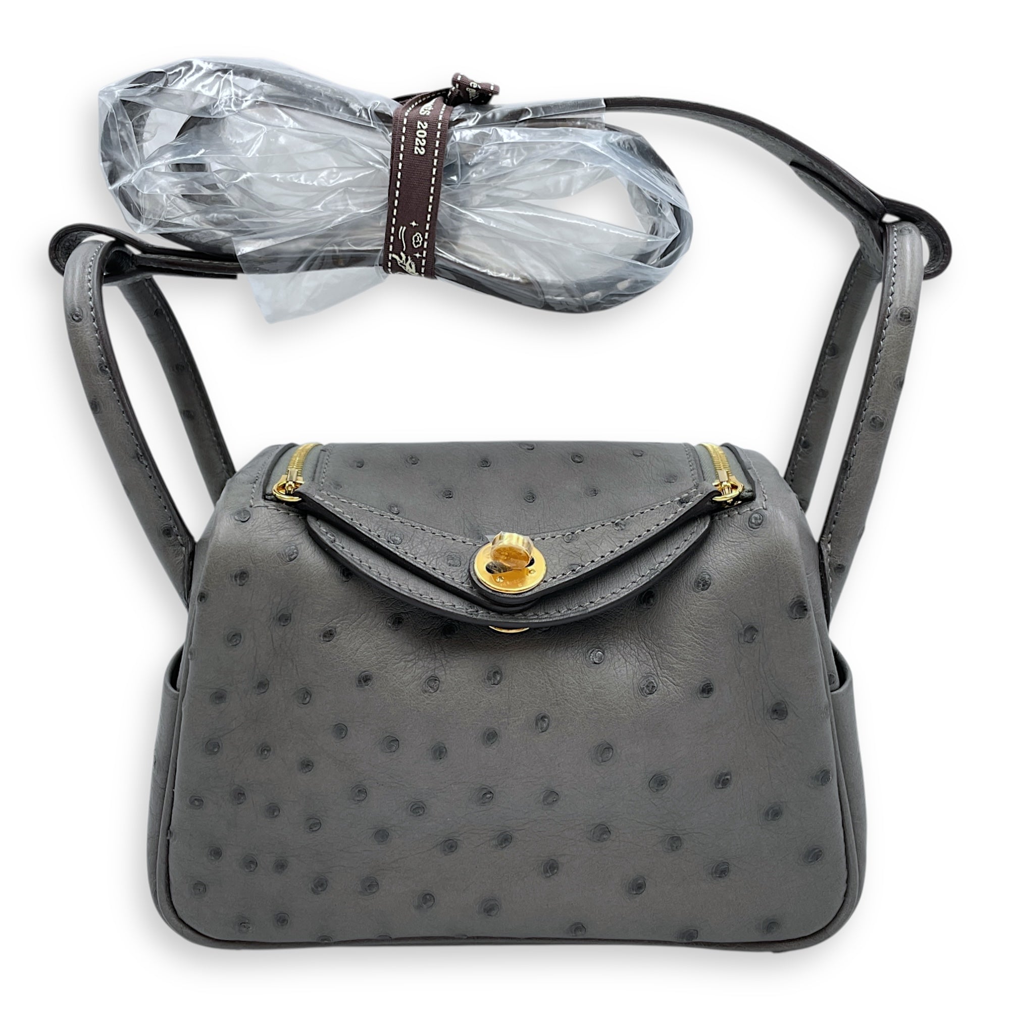 Be the first to review “Lindy II Mini Gris Meyer in Ostrich, Gold hardware”