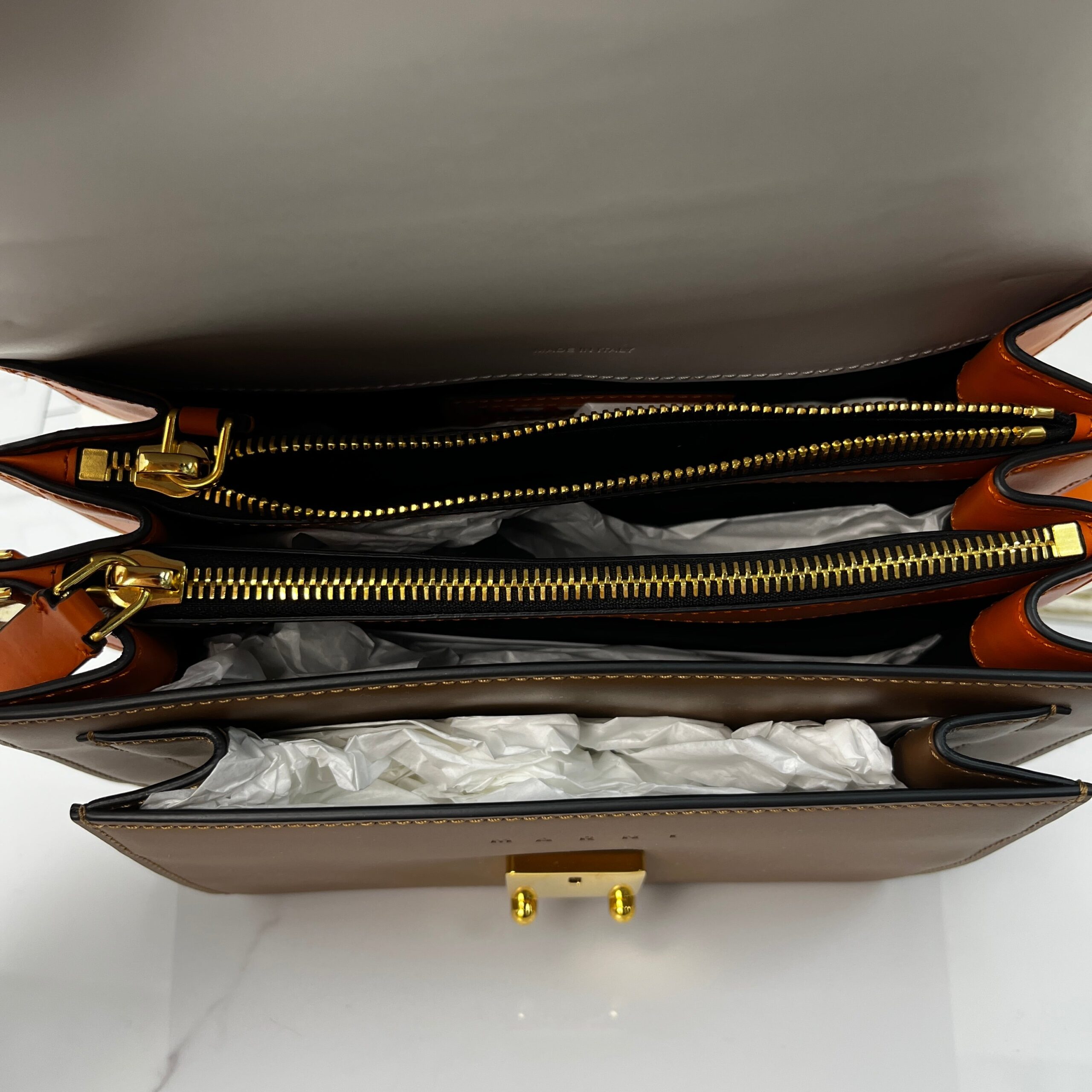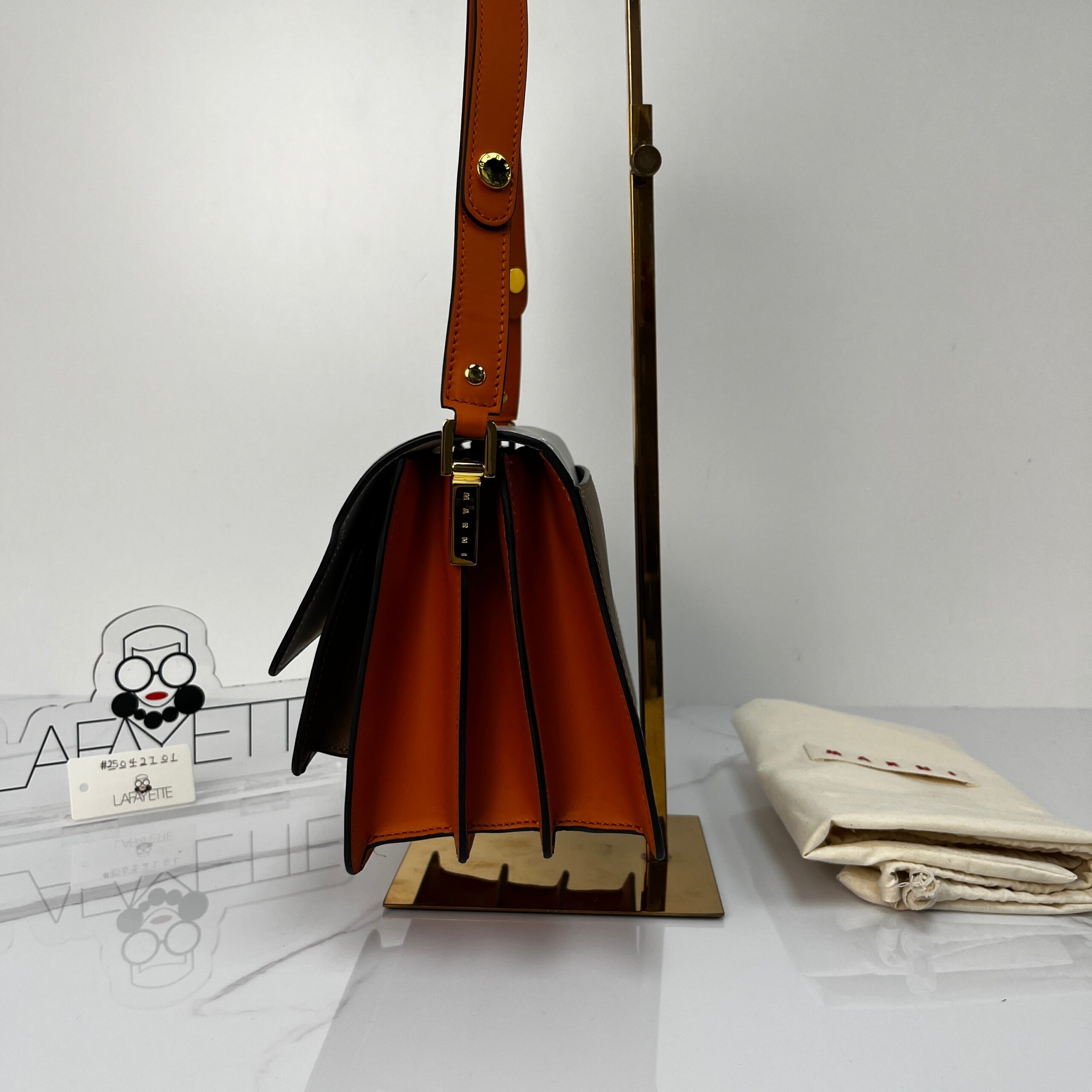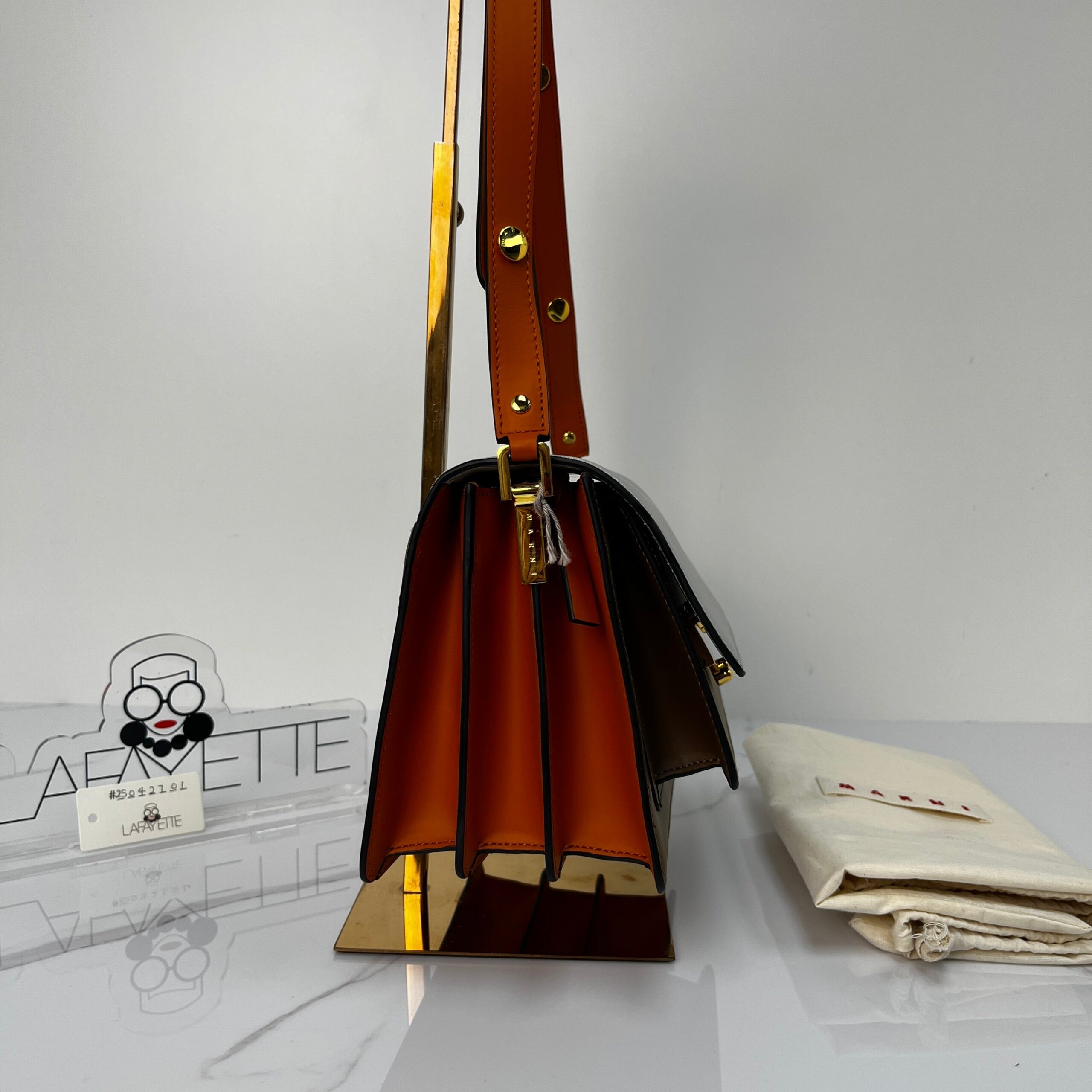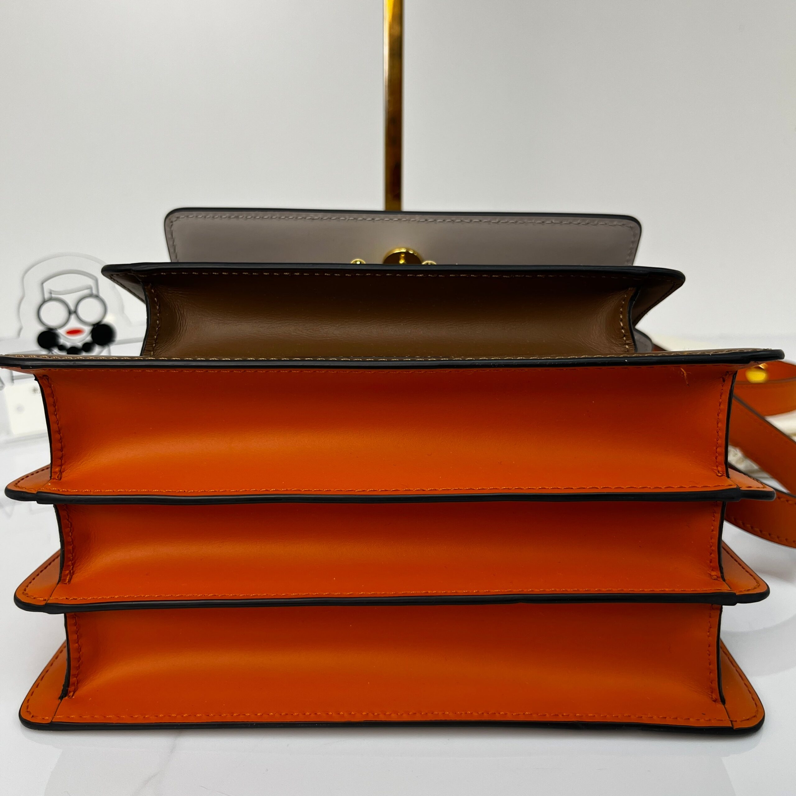 The Marni Medium Trunk in camel calfskin is your ultimate chic companion. Effortlessly transitions from casual denim to tailored looks with its clean lines and versatile neutral tone.