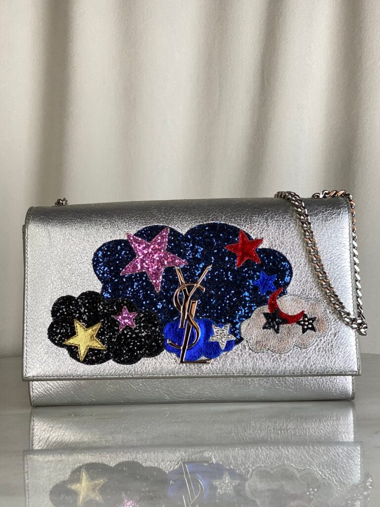 – Lining: Slight discolouration near hardware, partial fading of interior print