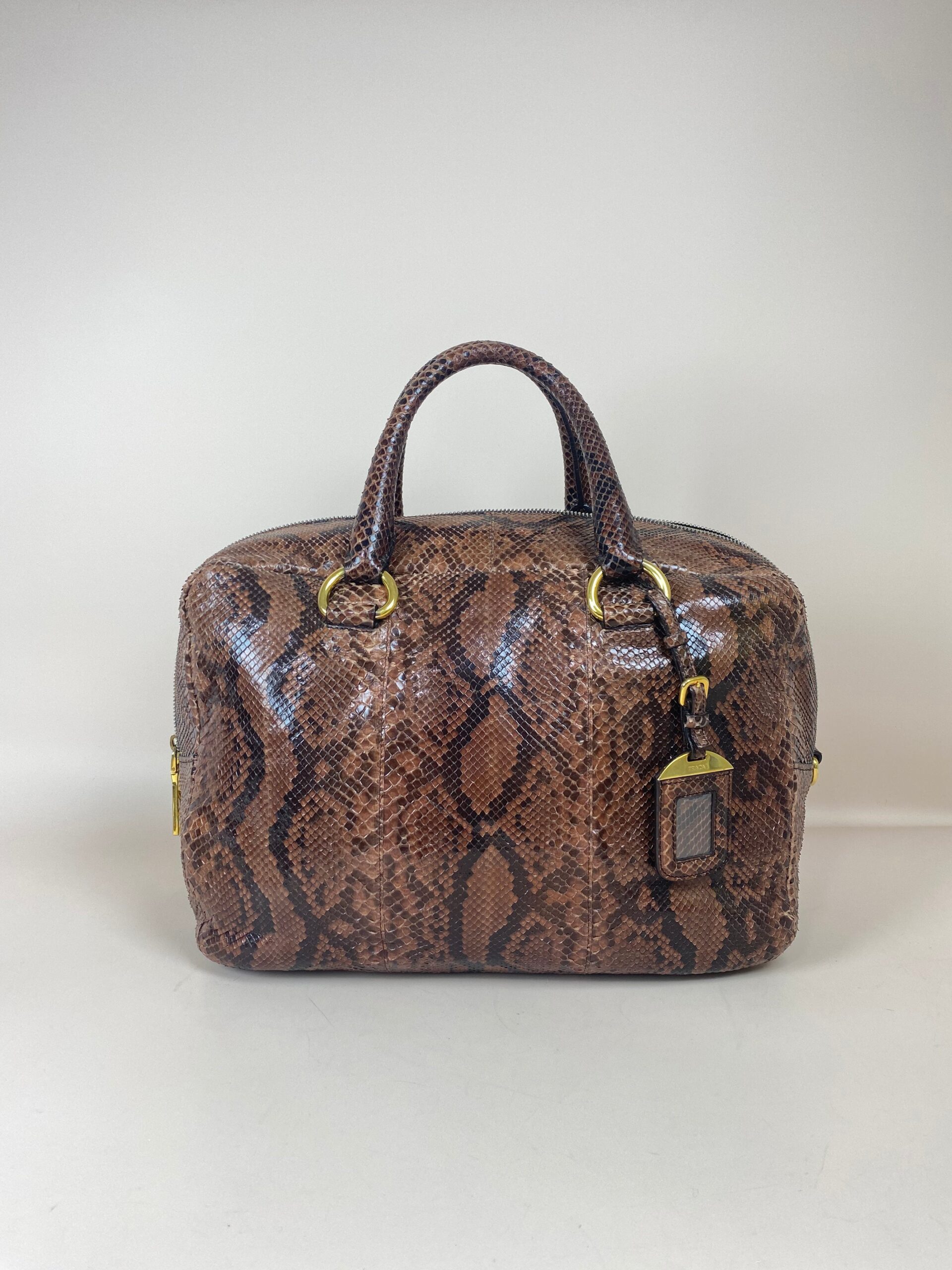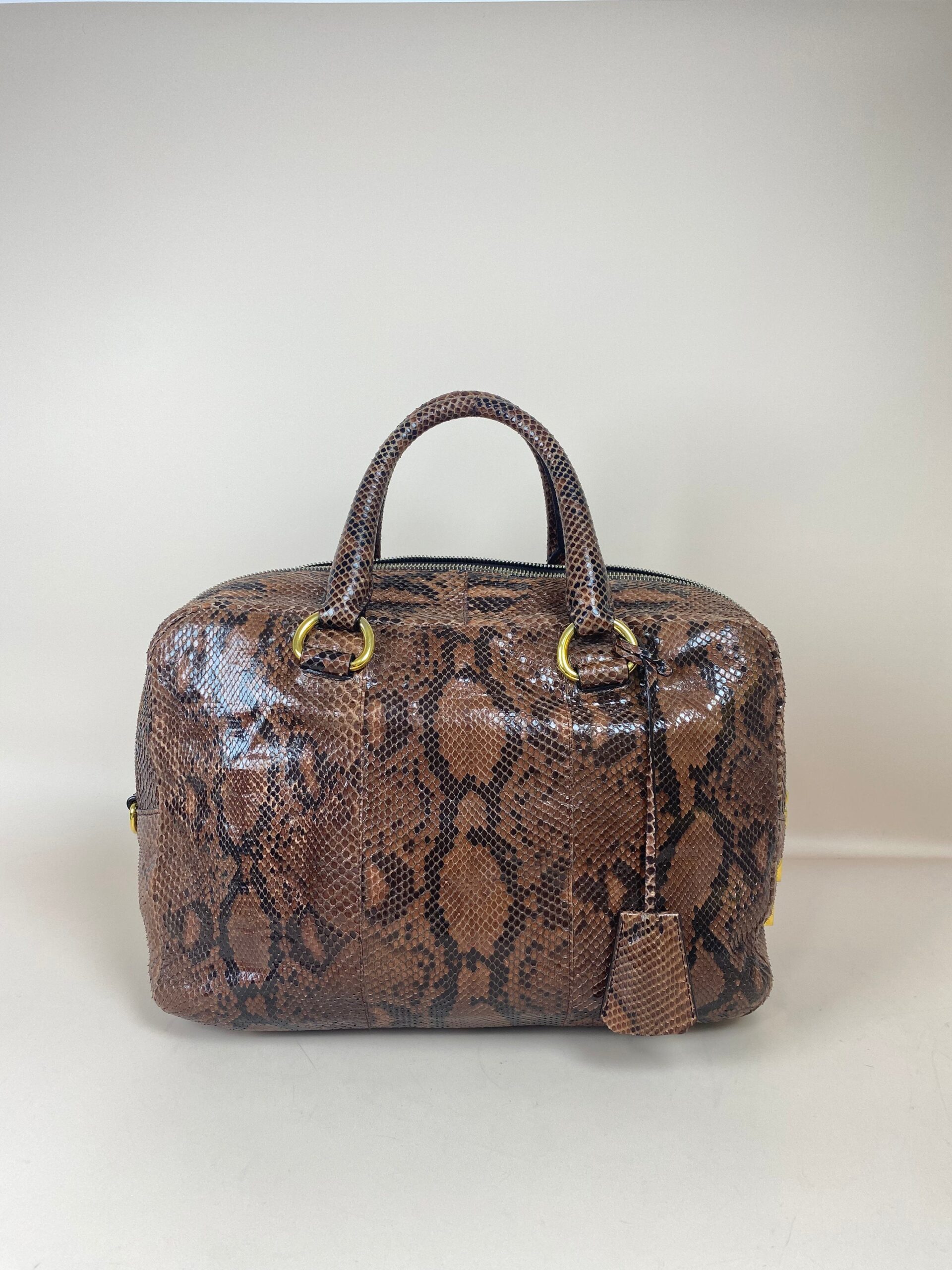 Be the first to review “Prada Brown Python Bauletto Large Top Handle Bag”