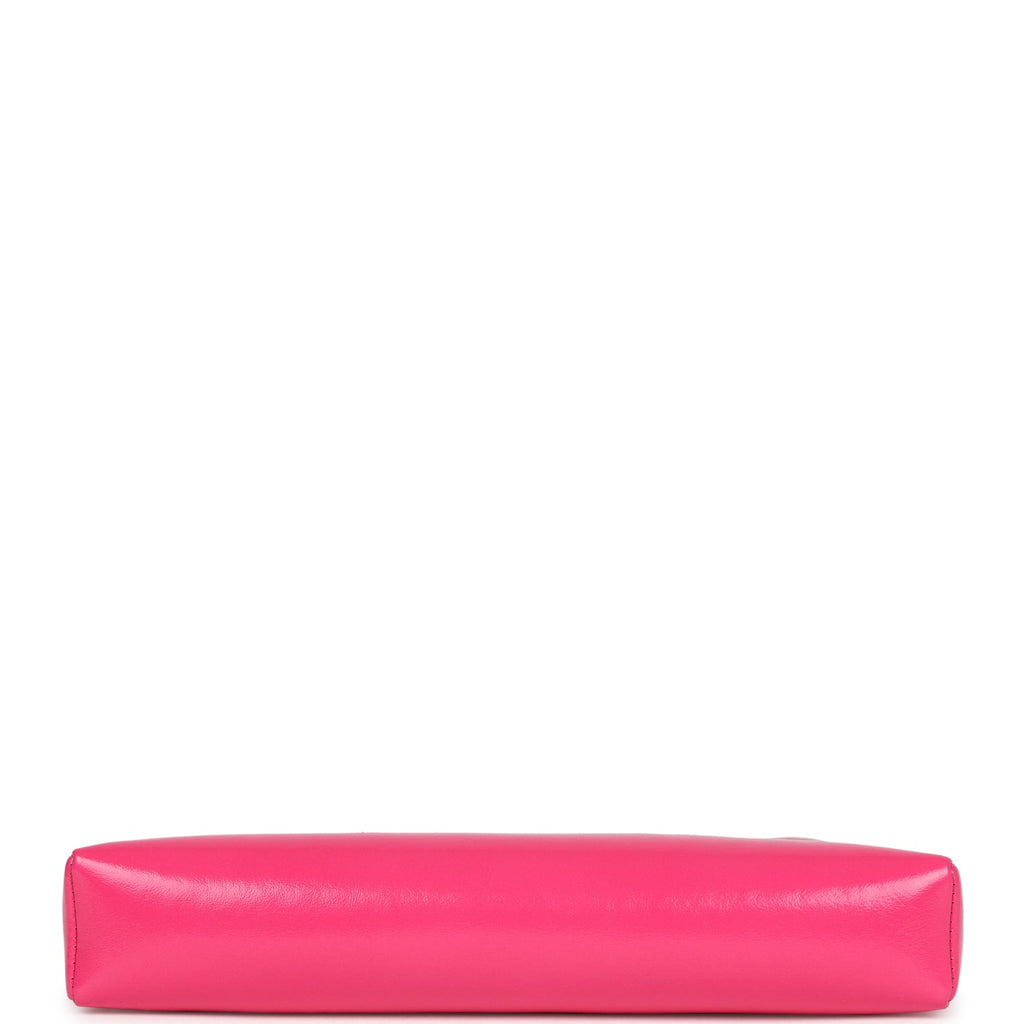 This Chanel 31 nano shopper bag in hot pink shiny aged lambskin leather with gold tone hardware, featuring cutout top handles, magnetic snap closure, CC logo on front on handbag and one interwoven hot pink leather and gold chainlink shoulder strap.The interior is lined in a mixture of hot pink grossgrain and leather with one slit pocket on rear wall.Collection: (RFID chip) Origin: ItalyCondition: Pre-owned; Mint – This bag retains it shape. No visible signs of wear to the exterior leather. Has plastic on the hardware. No signs of wear to the interior leather of the bag.Accompanied by: Chanel box, Chanel dustbag and carebookMeasurements: 8″ width x 6.25″ height x 1.25″ depth; 21″ handle strap drop