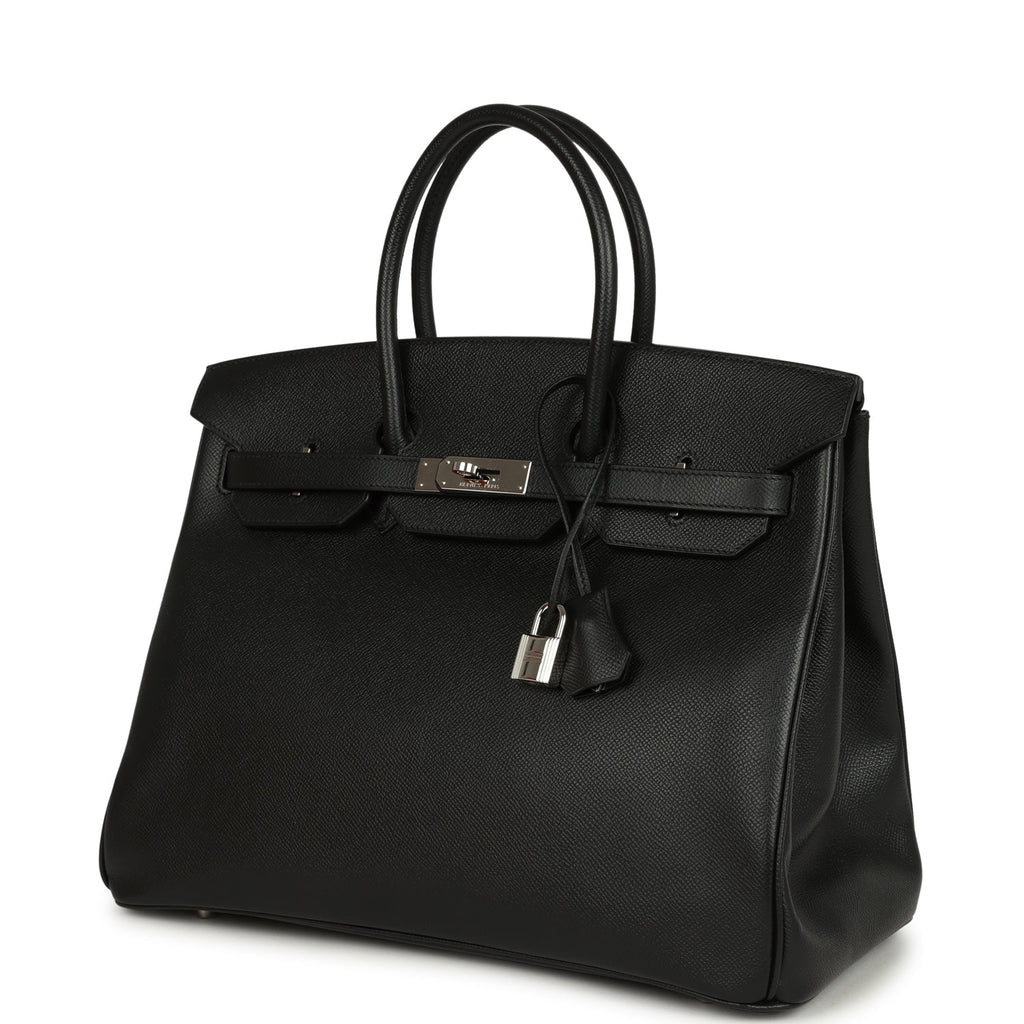 Pre-owned Hermes Birkin 35 Black Epsom Palladium Hardware Shop for an authentic pre-owned Hermes Birkin 35 in Black epsom leather with palladium hardware in excellent condition at Madison Avenue Couture.