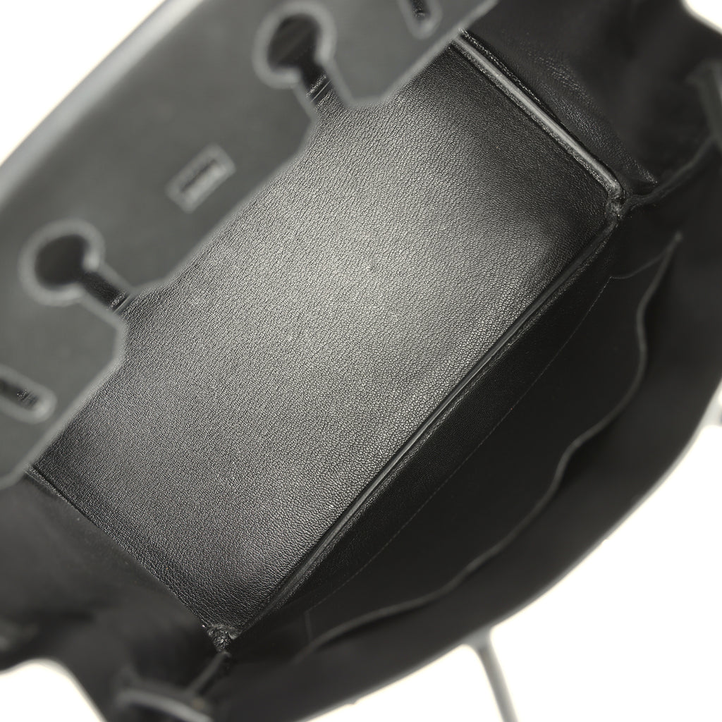This Birkin is in Black epsom leather with palladium hardware and has tonal stitching, front flap, two straps with center toggle closure, clochette with lock and two keys, and double rolled handles.The interior is lined with Black chevre leather and has one zip pocket with an Hermes engraved zipper pull and an open pocket on the opposite side.Collection: N Square (2010)Origin: FranceCondition: Pre-owned; Excellent – This bag mostly retains its shape structure, however there is some slight curving outwards to the front and back. There is no plastic on the hardware, resulting in light scratching present. The exteiror leather has rubbing to the bottom corners. The interior leather has press marks to the base and the front pocket has waving to the top edge.Accompanied by: Hermes dustbag, felt, clochette, clochette dustbag, lock, two keys, carebookMeasurements: 13.75″ width x 11″ height x 7″ depth; 4.25″ handle drop