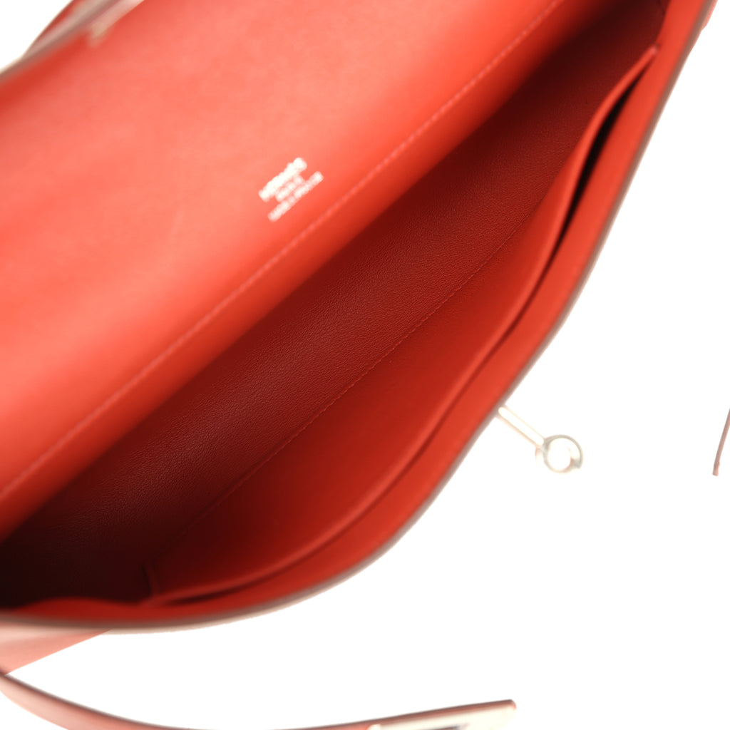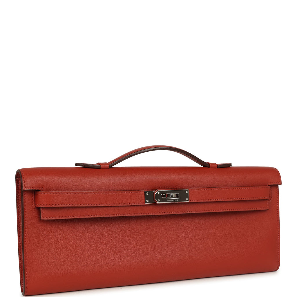 Pre-owned Hermes Kelly Cut Brique Swift Palladium Hardware Shop for an authentic pre-owned Hermes Kelly Cut in Brique swift leather with palladium hardware in excellent to mint condition at Madison Avenue Couture.