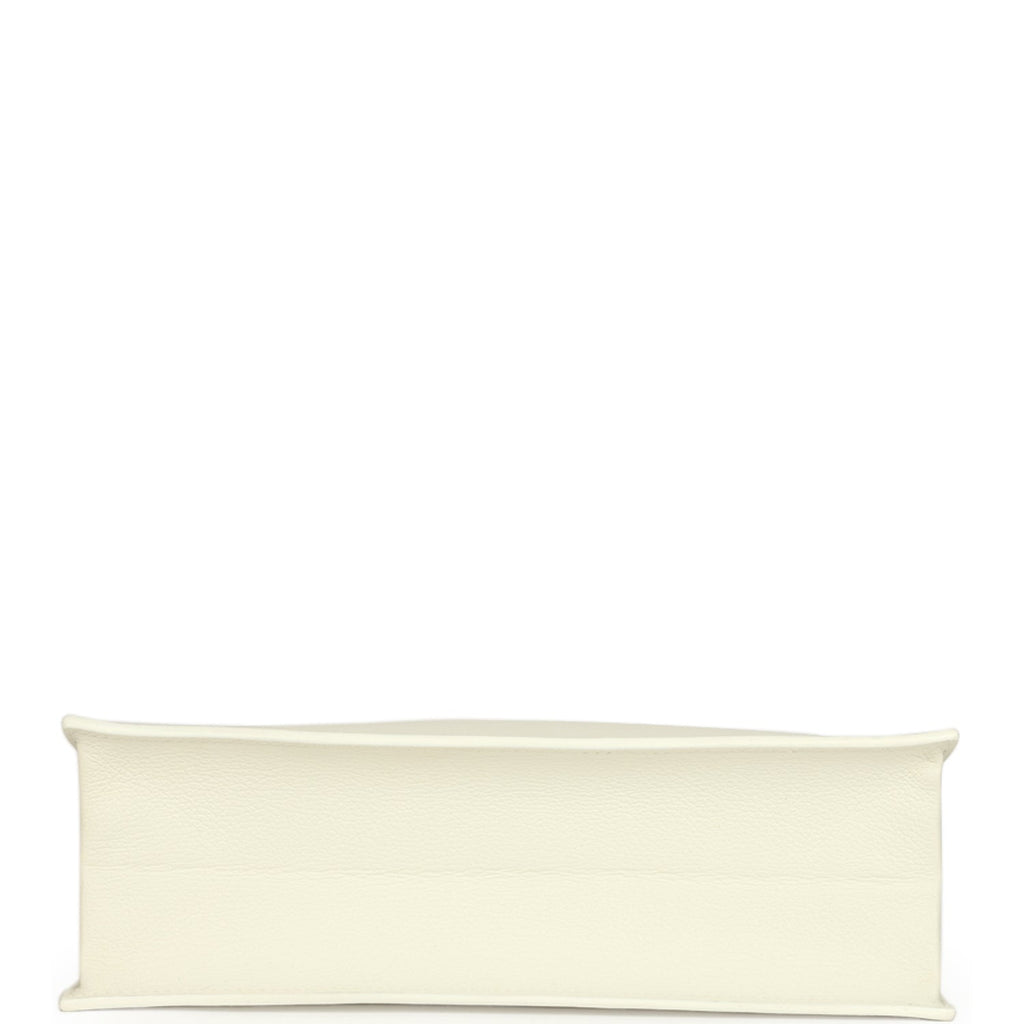 This Kelly Danse II is in White evercolor leather with gold hardware and has tonal stitching, two straps with front flap closure and an adjustable flat shoulder strap for multistyle wear.The interior is lined with White lambskin and has a removable Hermes stamped base and an open wall pocket.Collection: U (2022)Origin: FranceCondition: Pre-owned; Excellent to Mint – This bag retains its shape structure. There is only plastic on the flap hardware. The exposed hardware has moderate scratching present. The exterior leather is clean with the exception of some rubbing to the to the edge dressing on the bottom corners. The interior leather is clean with minimal signs of wear.Accompanied by: Hermes box, Hermes dustbag, felt, shoulder strap, shoulder strap dustbag, removable base insert, removable base insert dustbagMeasurements: 8.5″ width x 6.5″ height x 2.75″ depth; 1″ handle drop