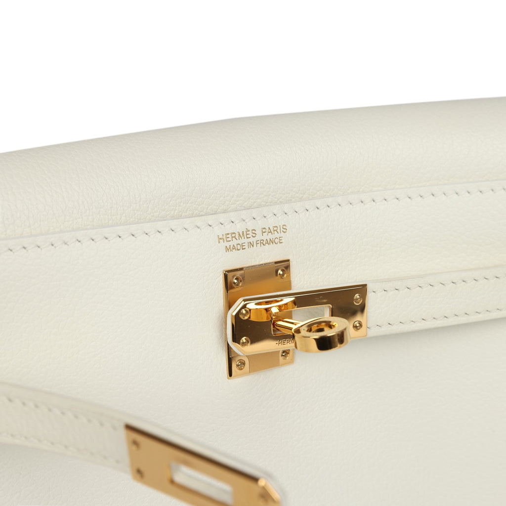 Pre-owned Hermes Kelly Danse White Evercolor Gold Hardware Shop for an authentic pre-owned Hermes Kelly Danse in White evercolor leather with gold hardware in excellent to mint condition at Madison Avenue Couture.