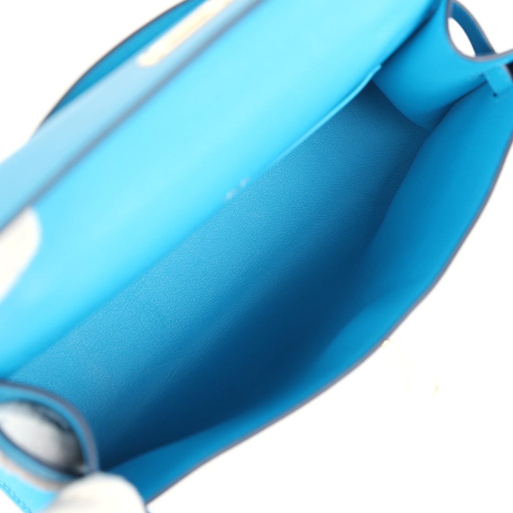 Pre-owned Hermes Kelly Pochette Bleu Frida Swift Gold Hardware Shop for an authentic pre-owned Hermes Kelly Pochette in Bleu Frida swift leather with gold hardware in excellent to mint condition at Madison Avenue Couture.