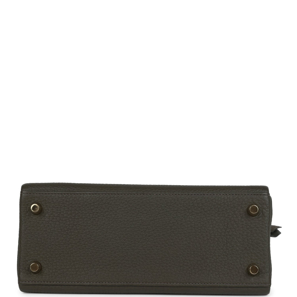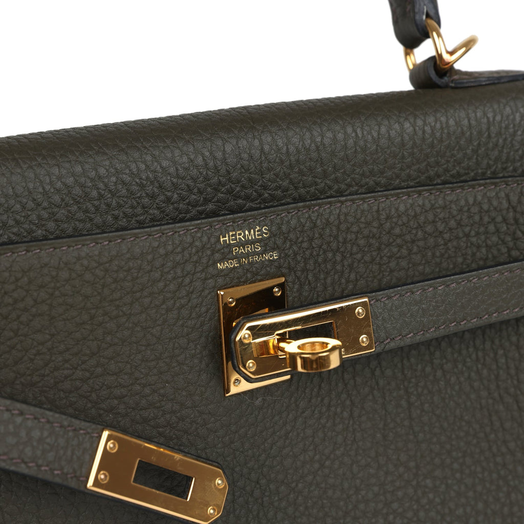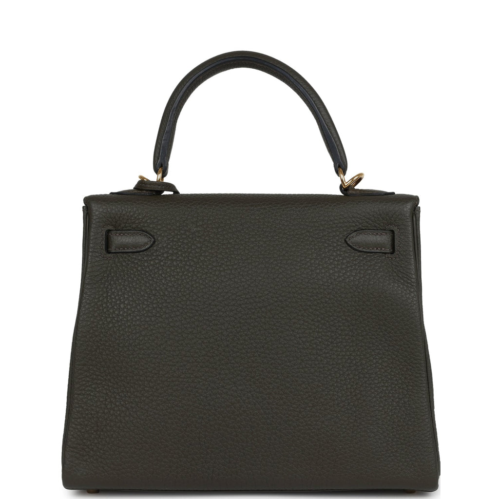 Pre-owned Hermes Kelly Retourne 25 Vert De Gris Togo Gold Hardware Shop for an authentic pre-owned Hermes Kelly Retourne 25 in Vert De Gris togo leather with gold hardware in excellent to mint condition at Madison Avenue Couture.