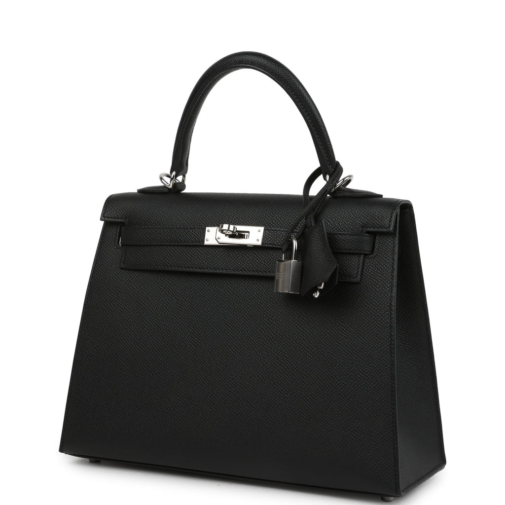 Pre-owned Hermes Kelly Sellier 25 Black Epsom Palladium Hardware Shop for an authentic pre-owned Hermes Kelly Sellier 25 in black epsom leather with palladium hardware in excellent condition at Madison Avenue Couture.