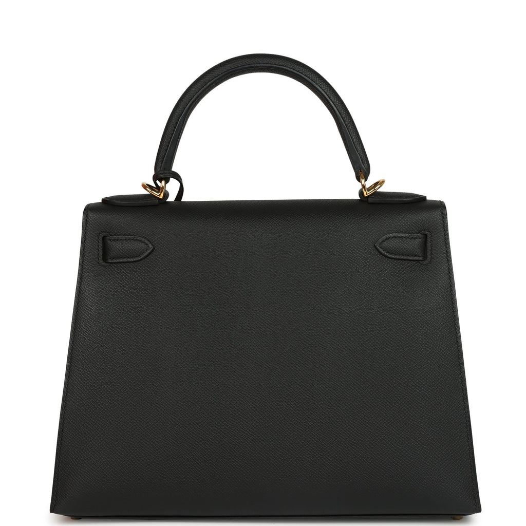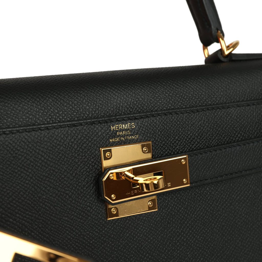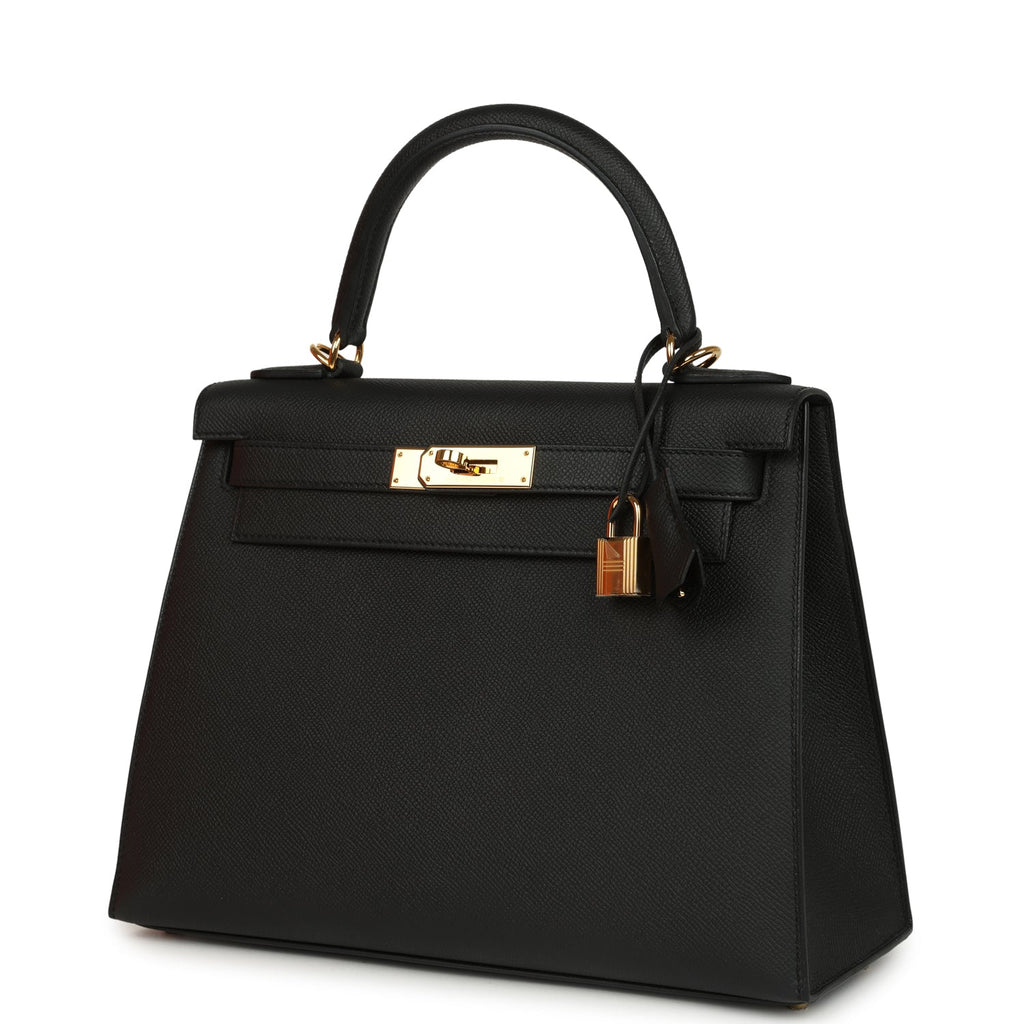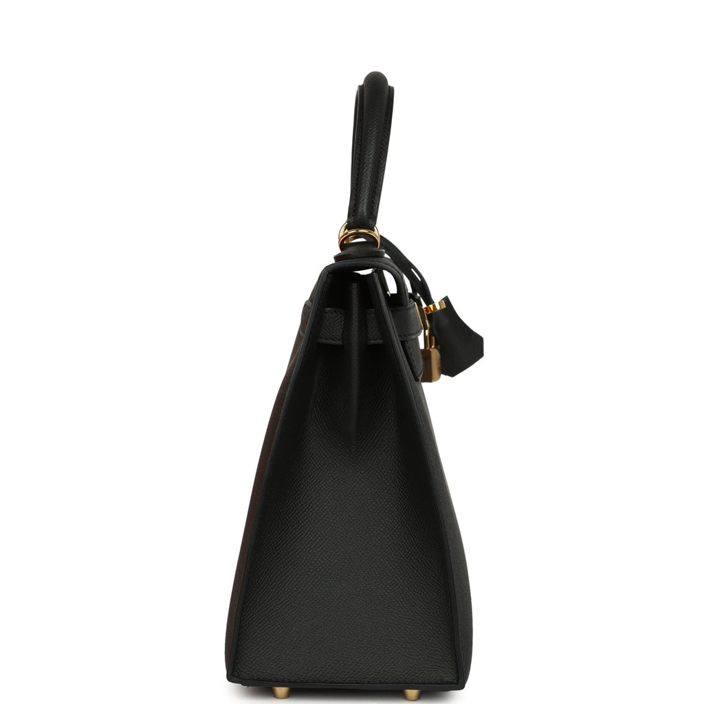 Pre-owned Hermes Kelly Sellier 28 Black Epsom Gold Hardware Shop for an authentic pre-owned Hermes Kelly Sellier 28 in Black epsom leather with gold hardware in mint condition at Madison Avenue Couture.