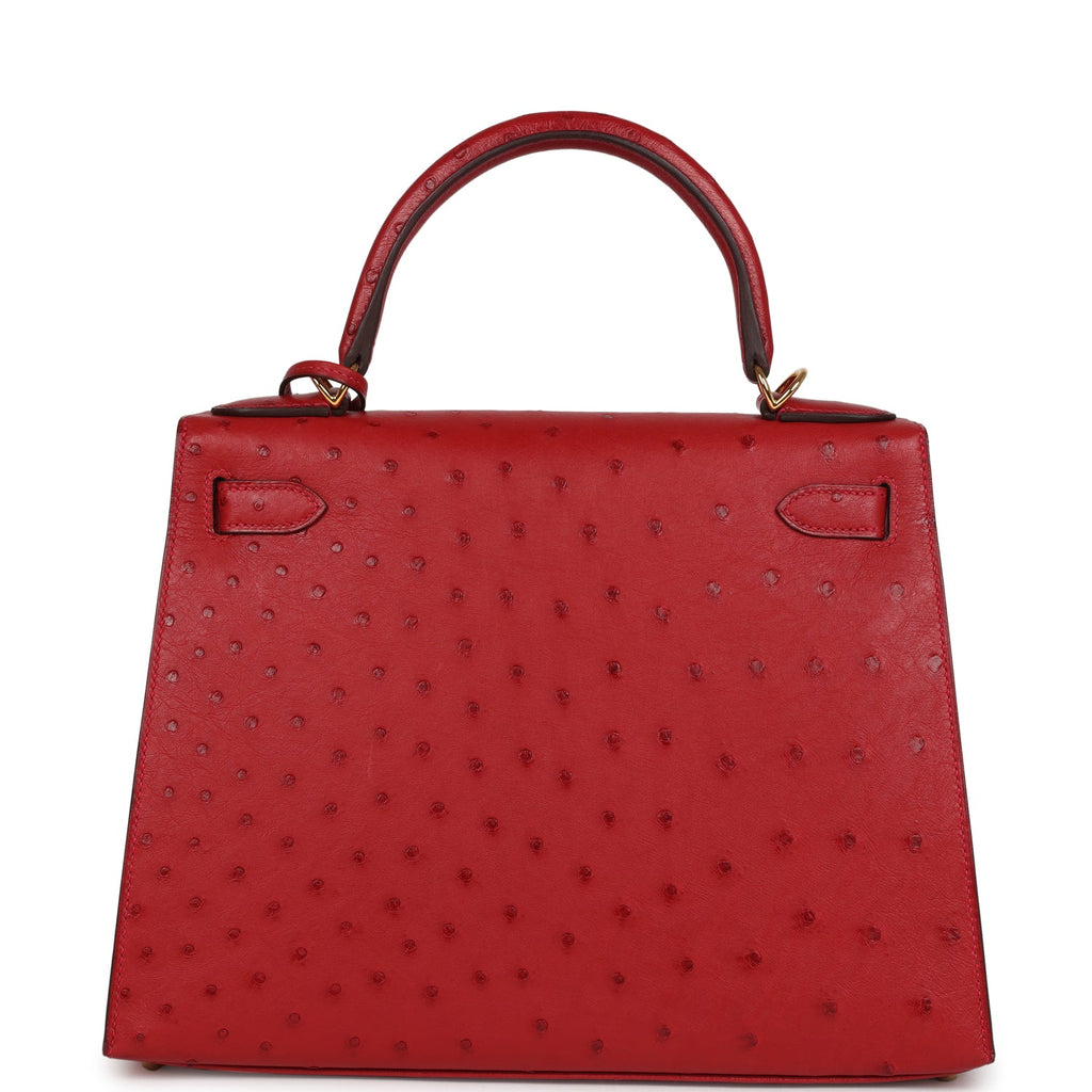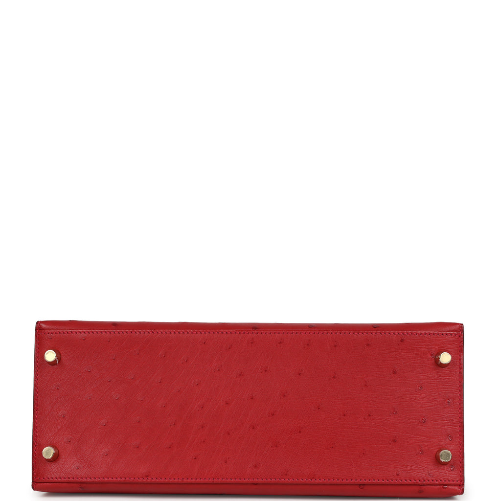 Pre-owned Hermes Kelly Sellier 28 Rouge Vif Ostrich Gold Hardware Shop for an authentic pre-owned Hermes Kelly Sellier 28 Rouge Vif Ostrich with gold hardware in excellent to mint condition at Madison Avenue Couture.