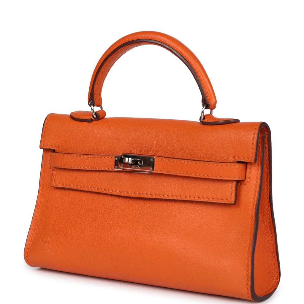 Pre-owned Hermes Micro Kelly 15 Orange Swift Palladium Hardware Shop for an authentic pre-owned Hermes Micro Kelly 15 in Orange swift leather with palladium hardware in excellent to mint condition at Madison Avenue Couture.