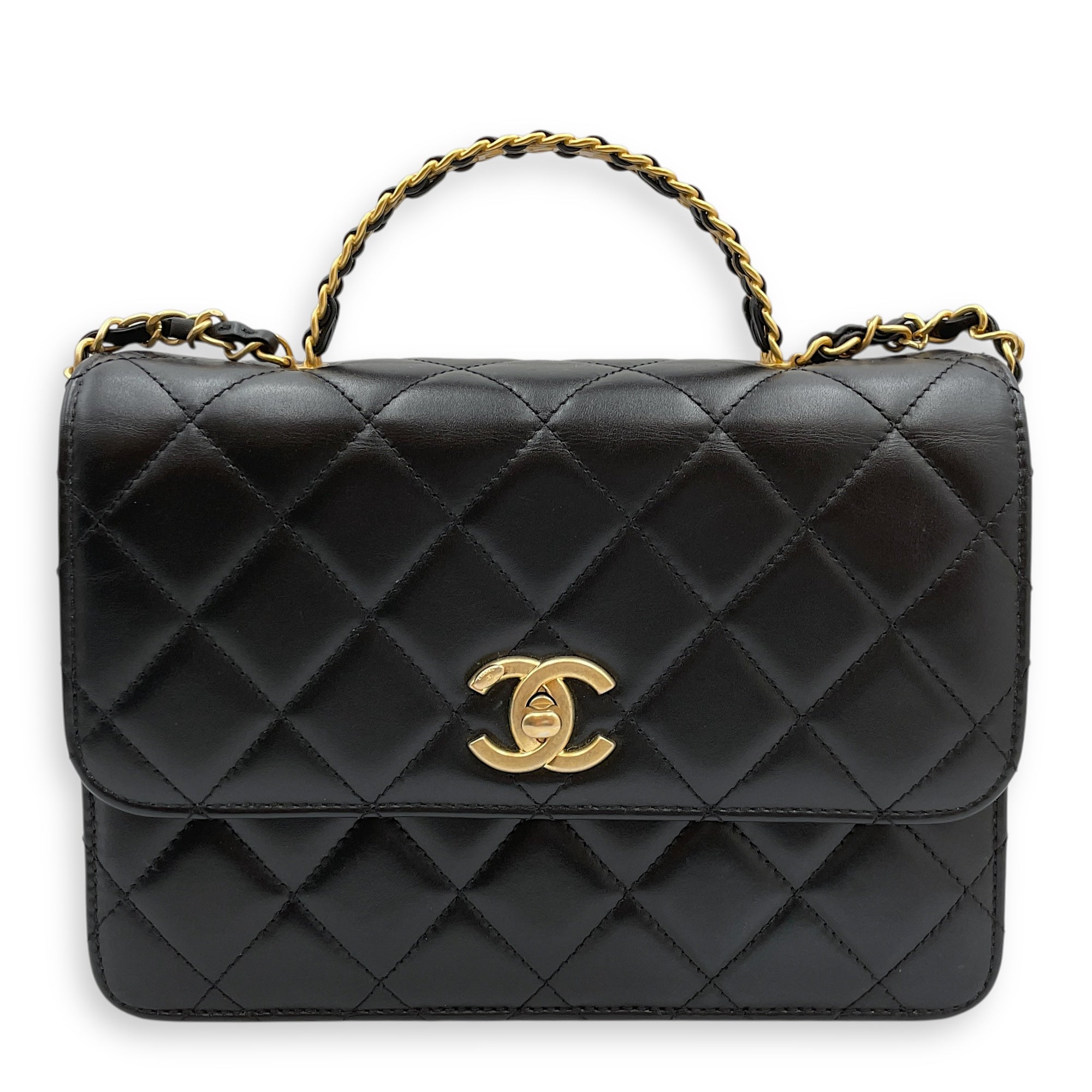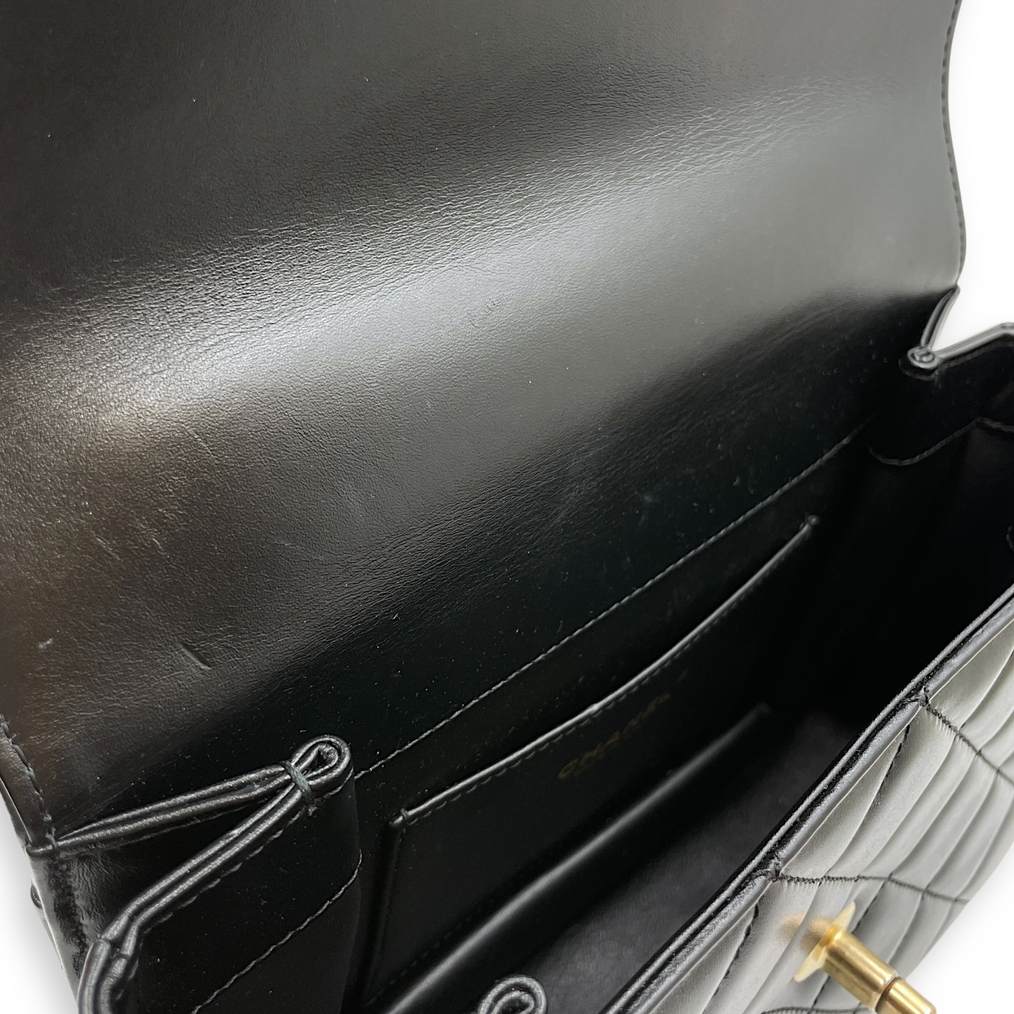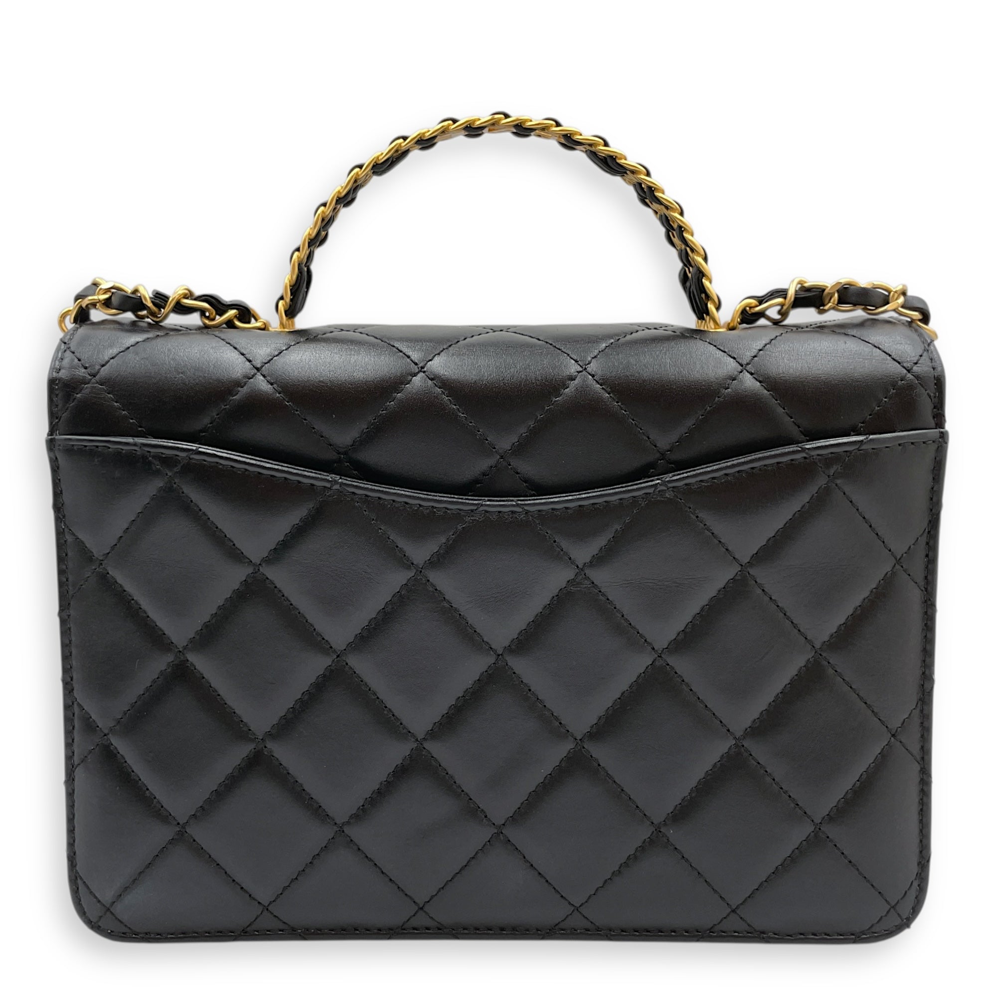 Quilted Matelasse Black Top Handle Black in Lambskin, Gold hardware