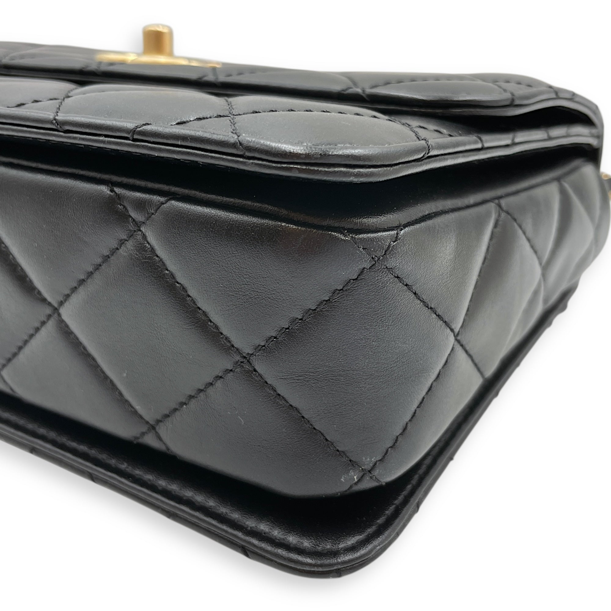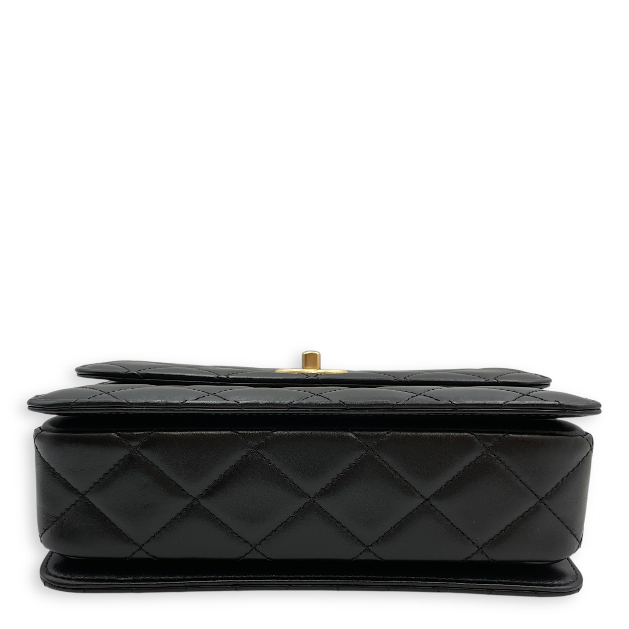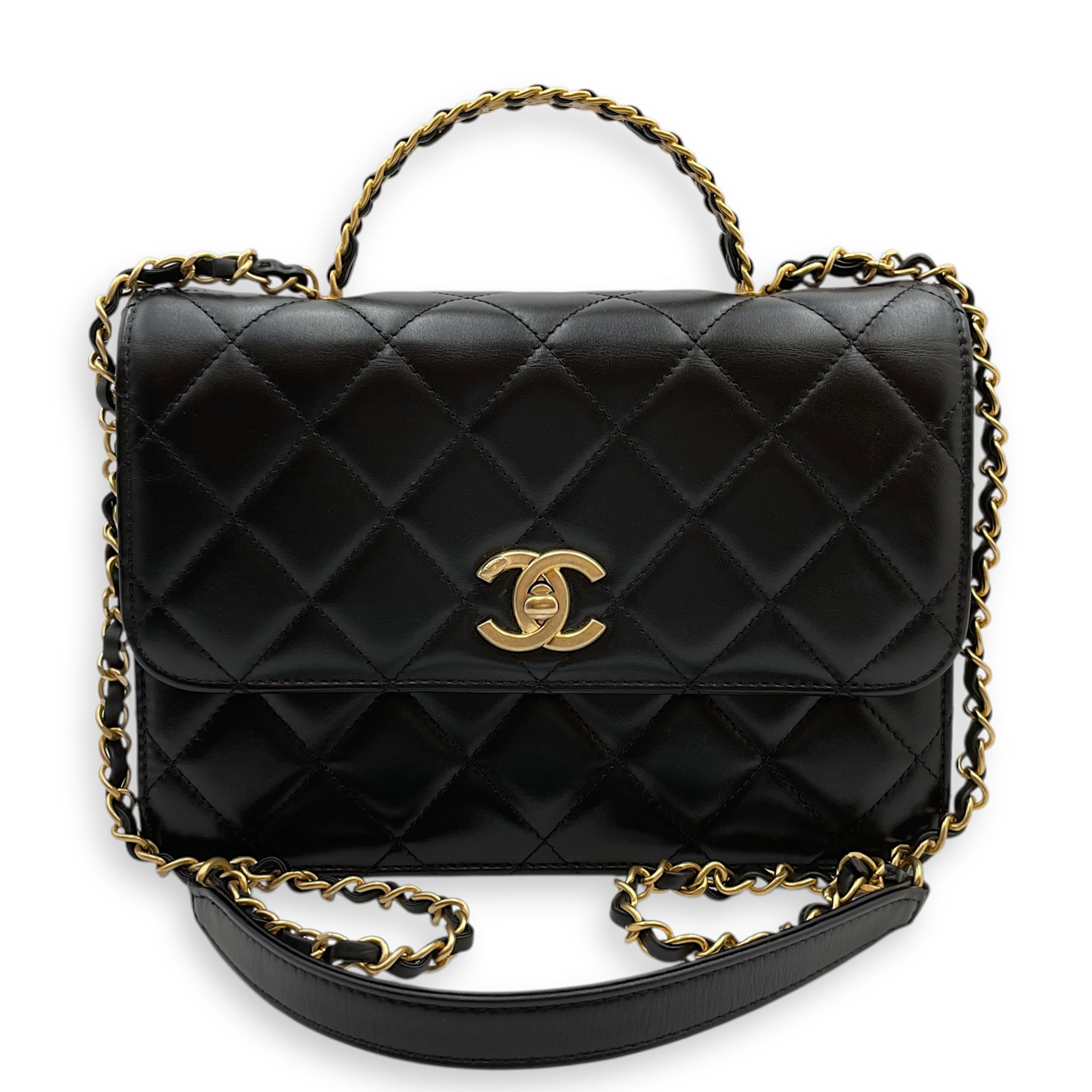 Quilted Matelasse Black Top Handle Black in Lambskin, Gold hardware