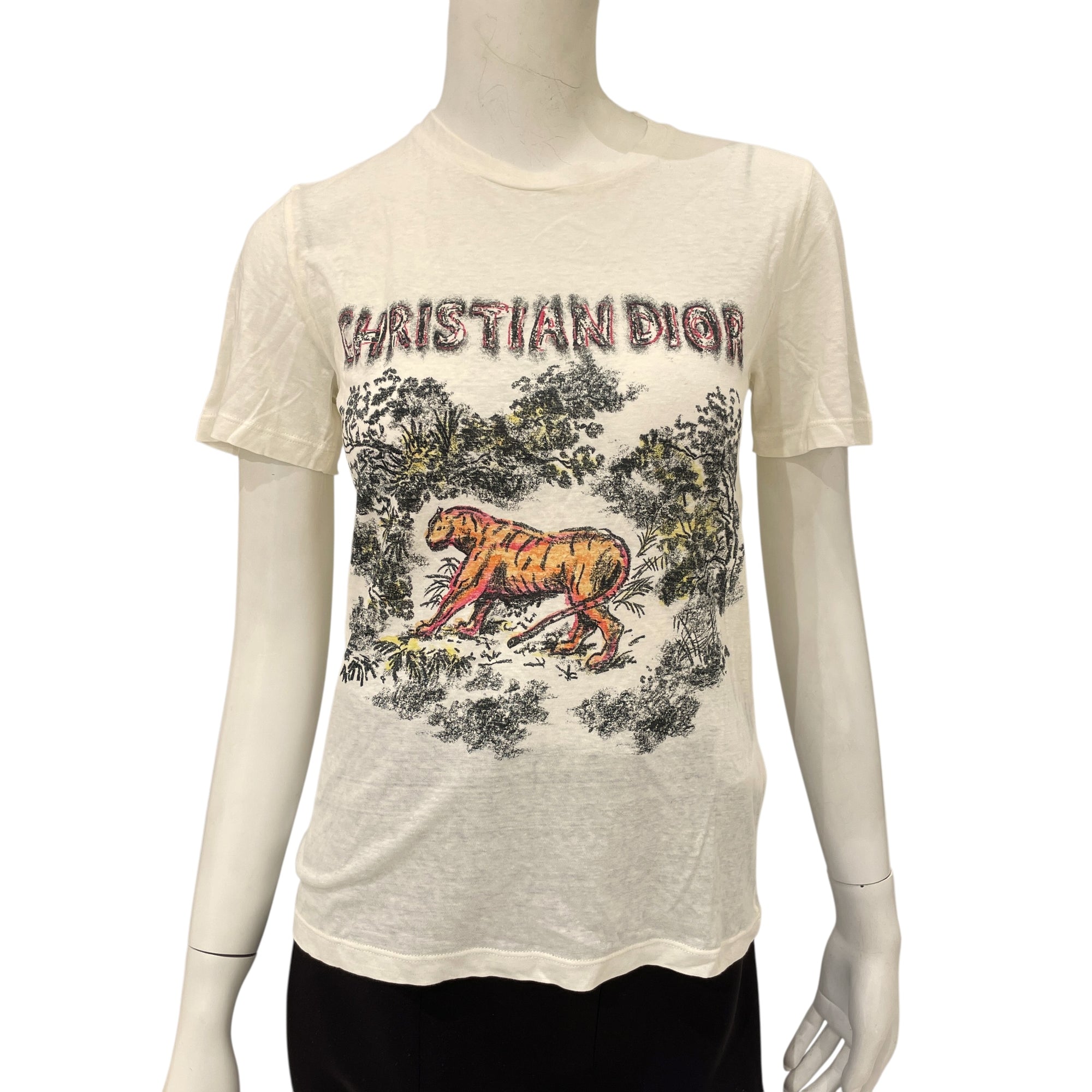 S/S T-Shirt Tiger Motif XS Cream/Orange Ready-To-Wear in Cotton