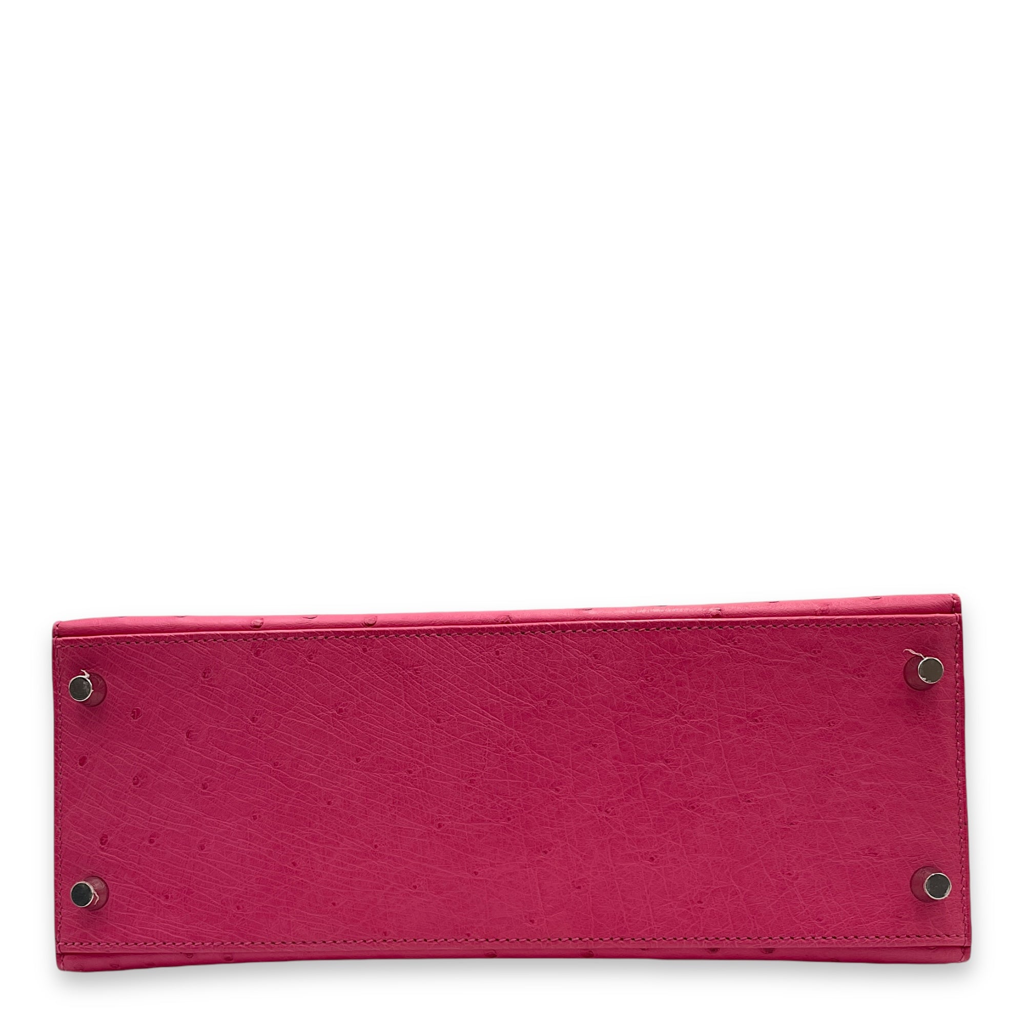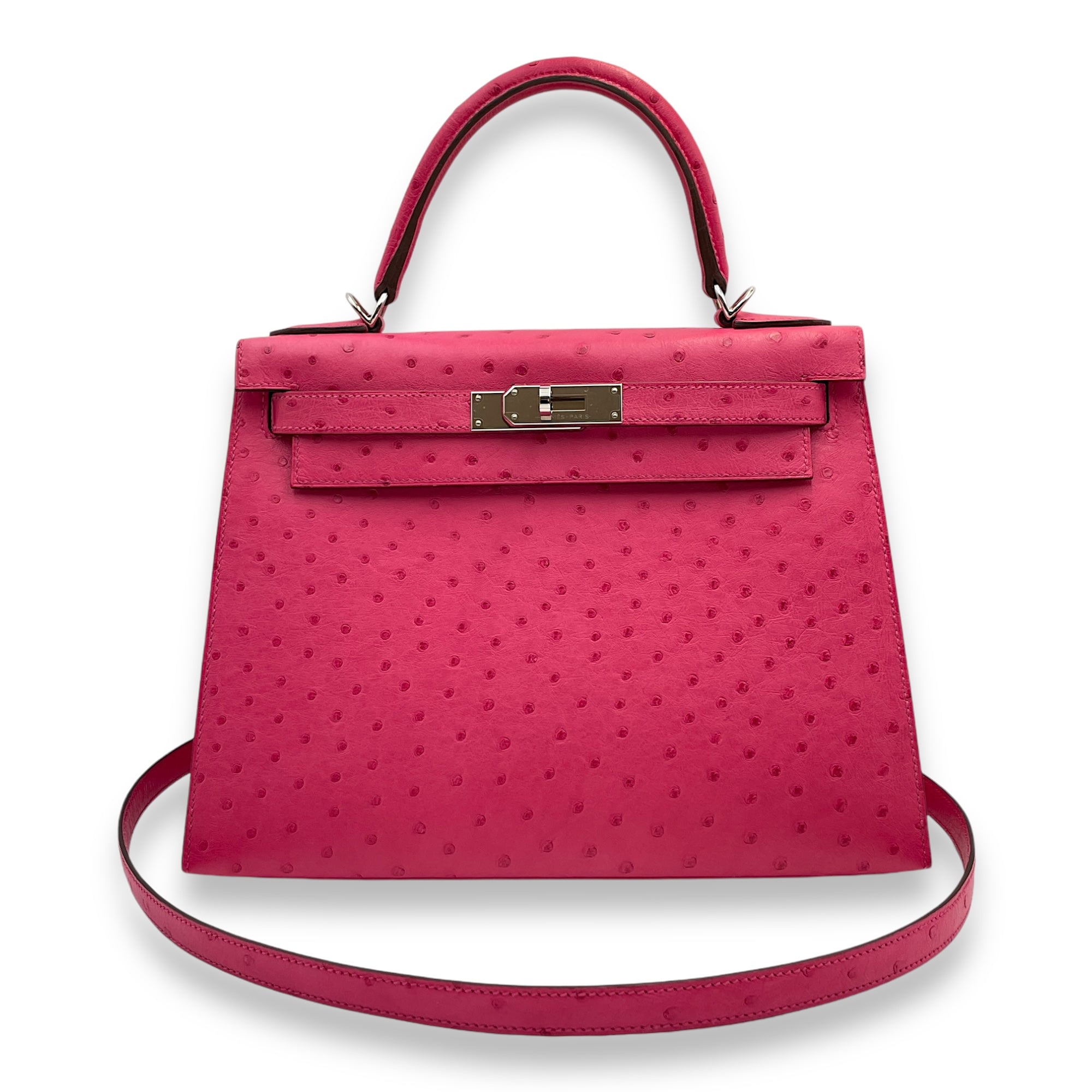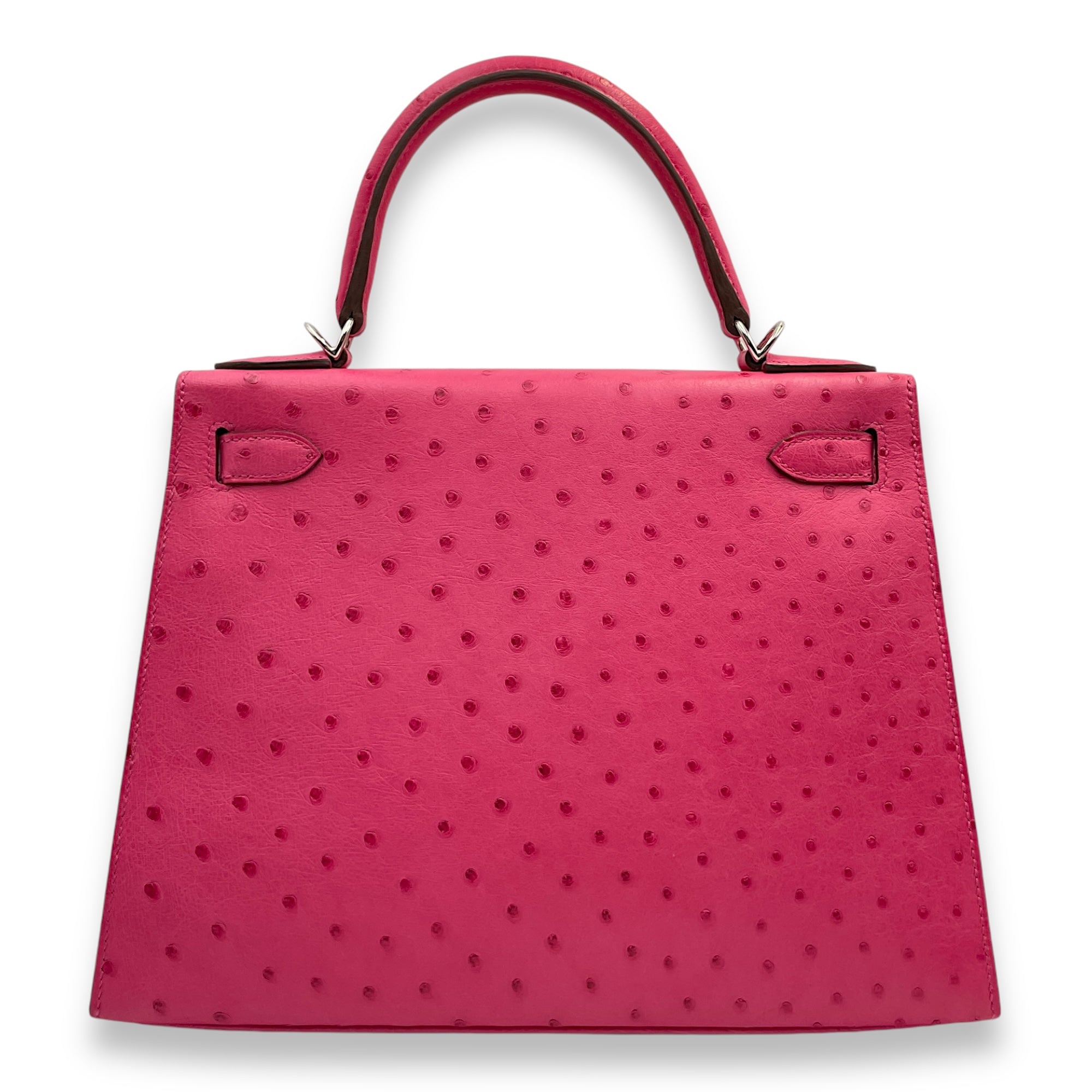 Sellier Kelly 28 Pink in Ostrich, Palladium hardware