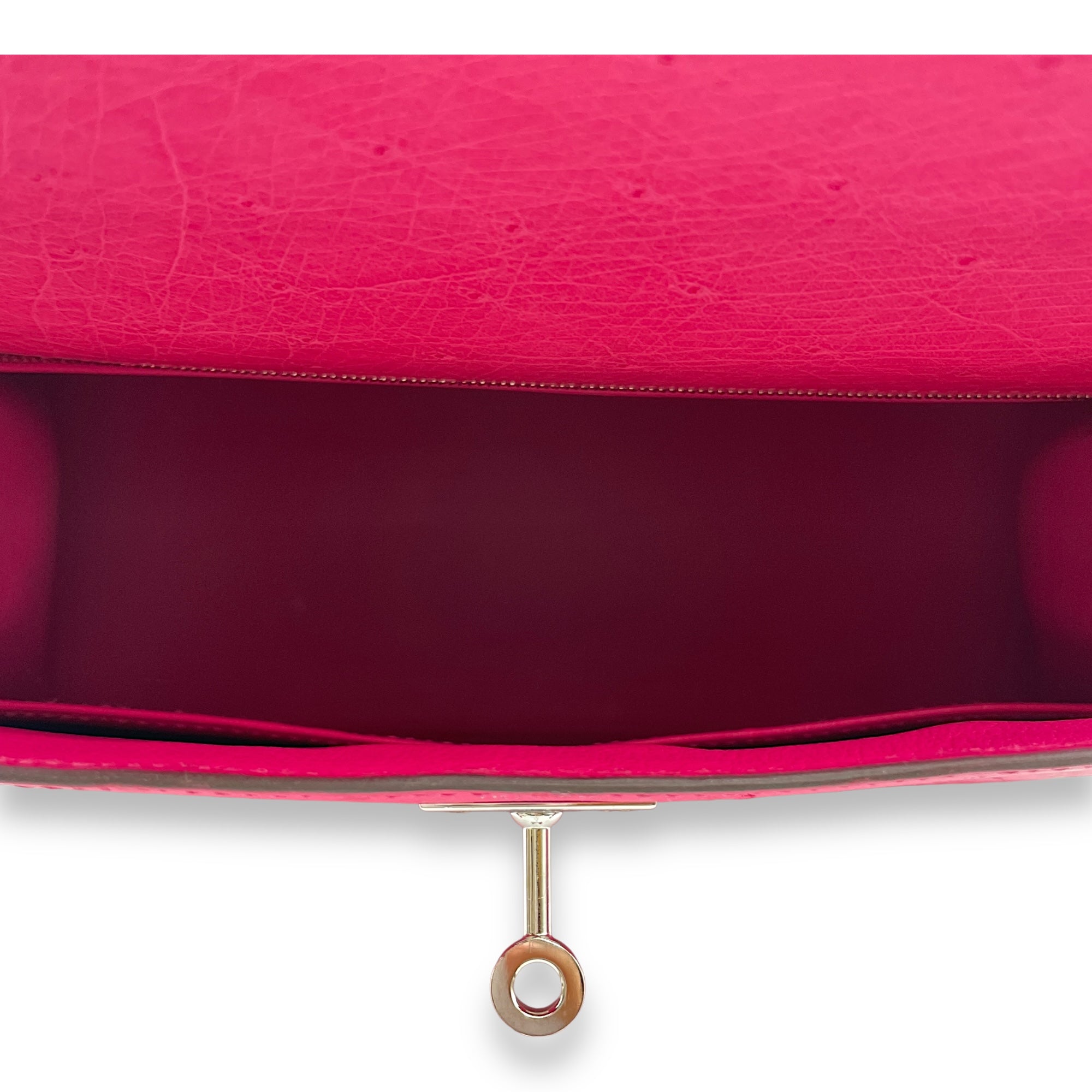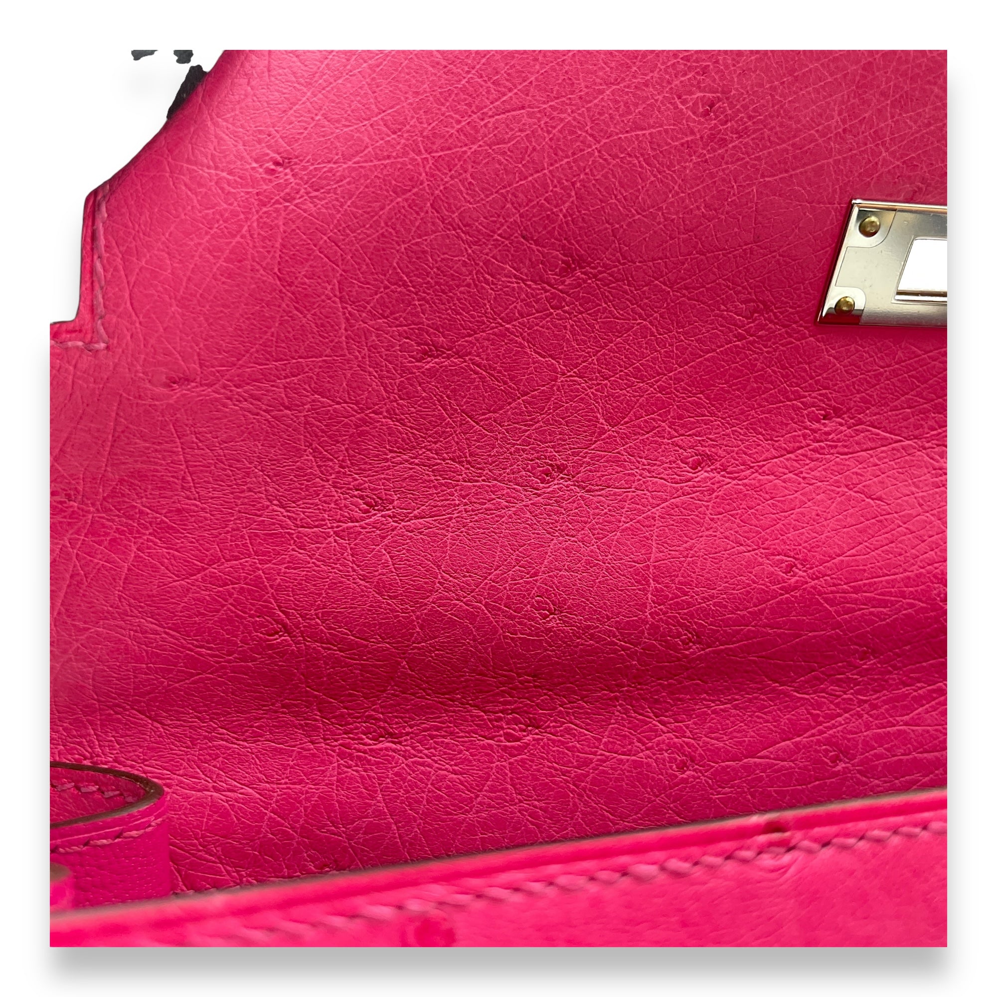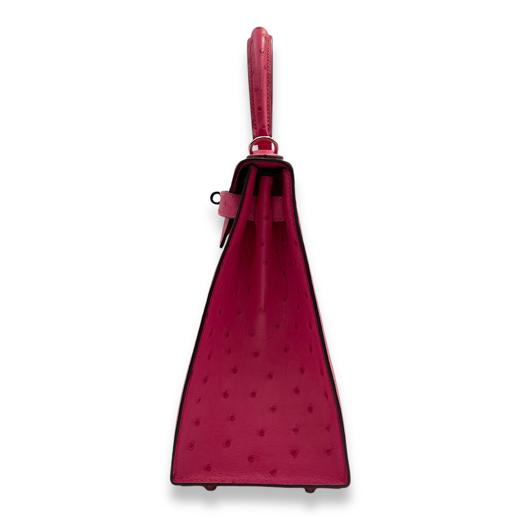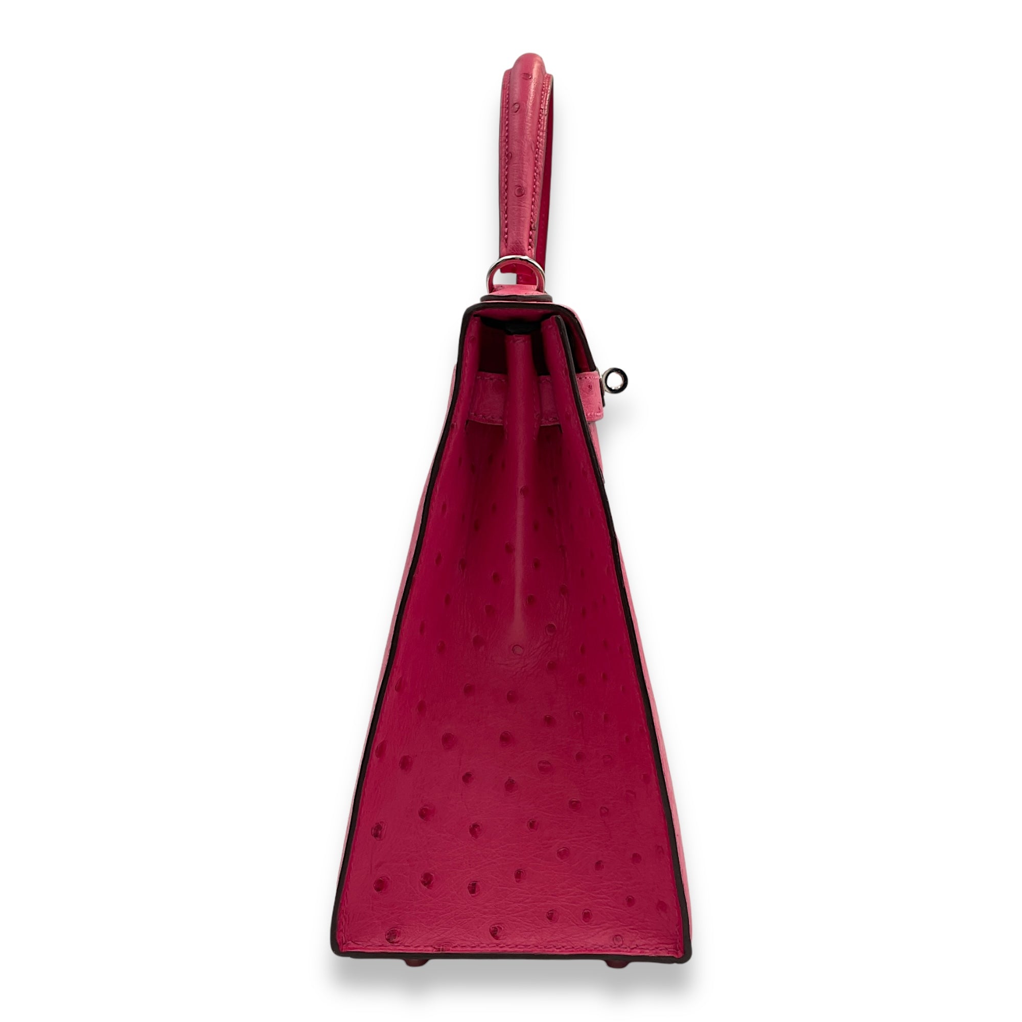 Sellier Kelly 28 Pink in Ostrich, Palladium hardware