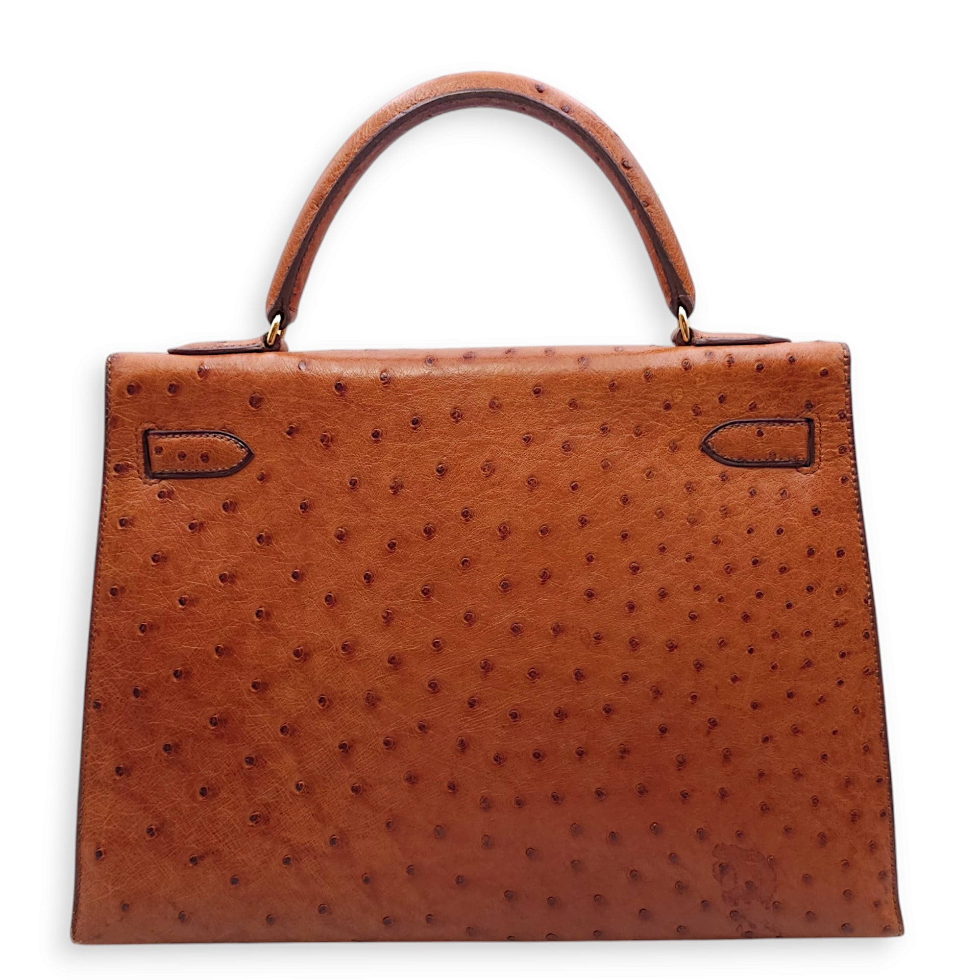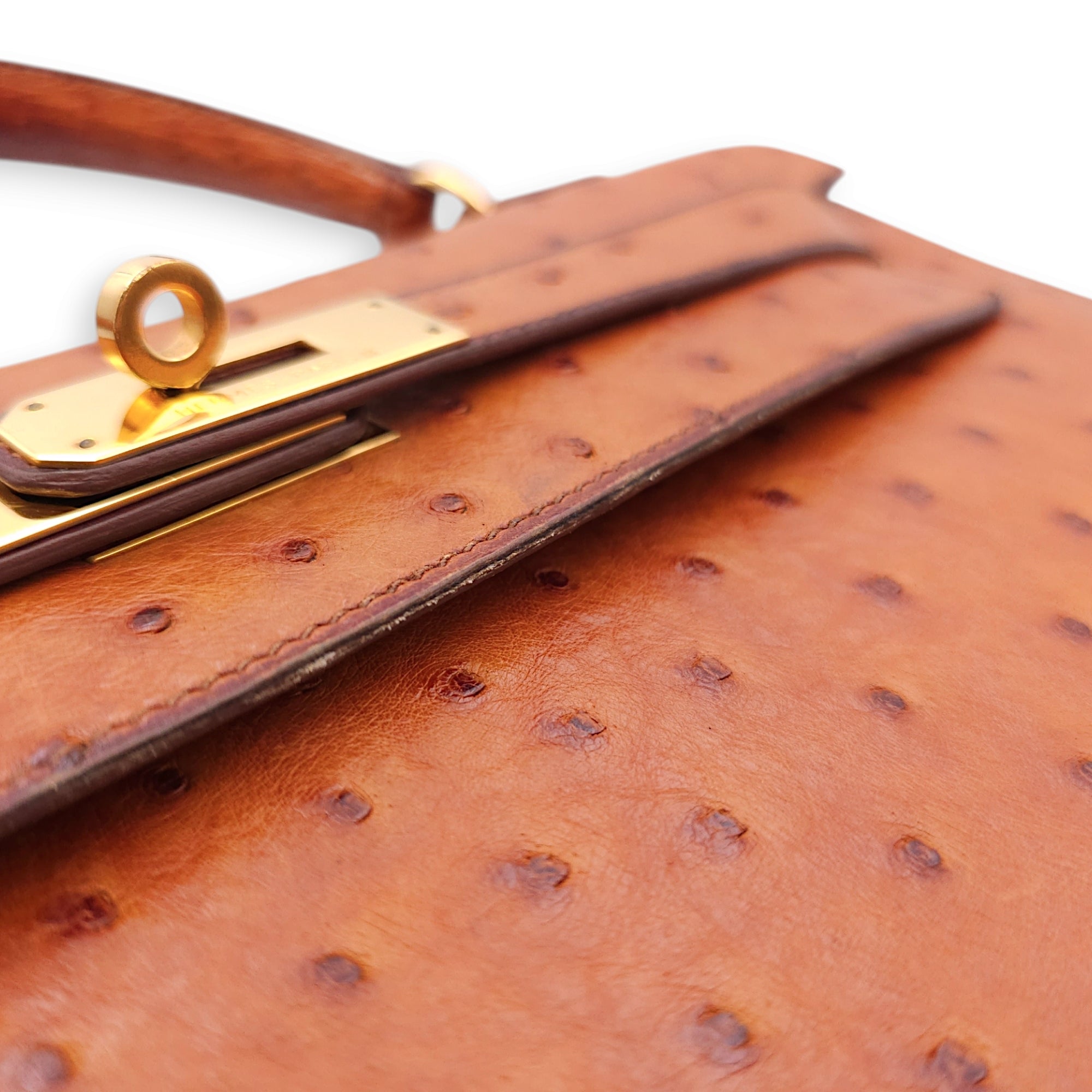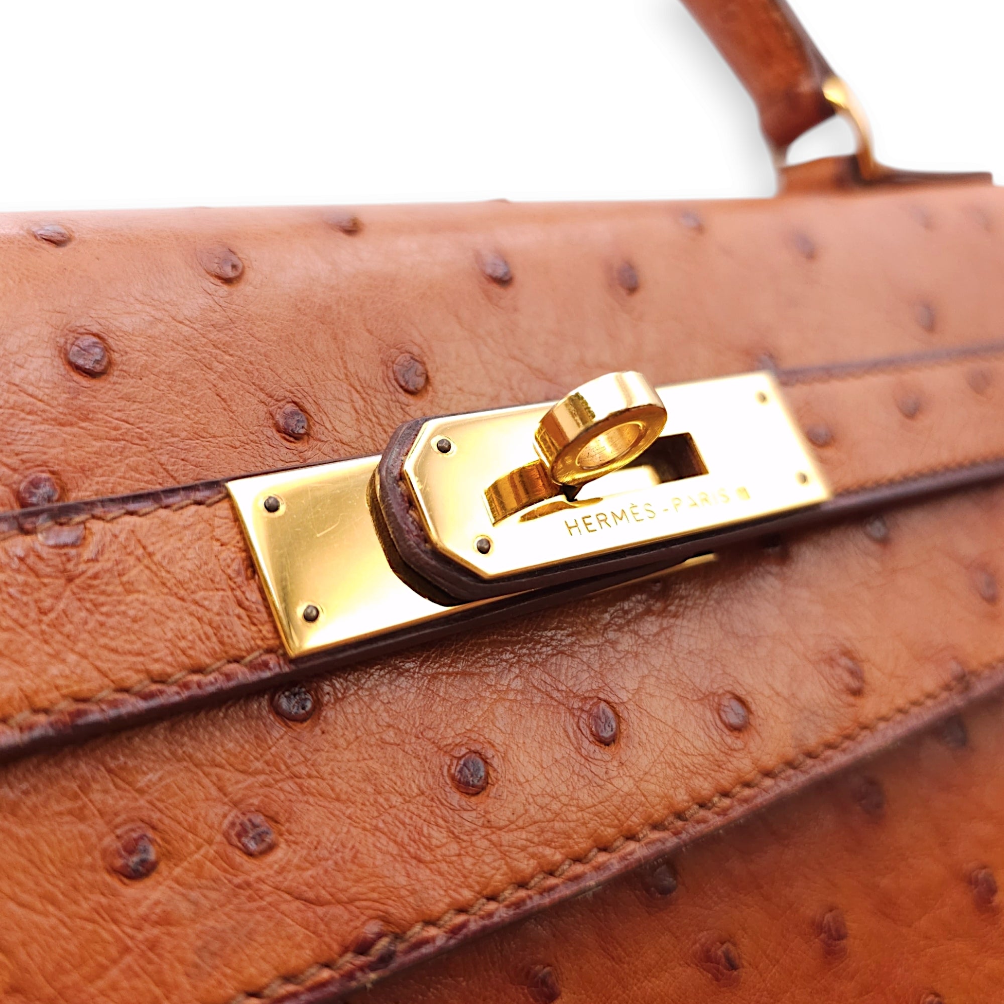 Sellier Kelly 32 Cognac in Ostrich, Gold hardware