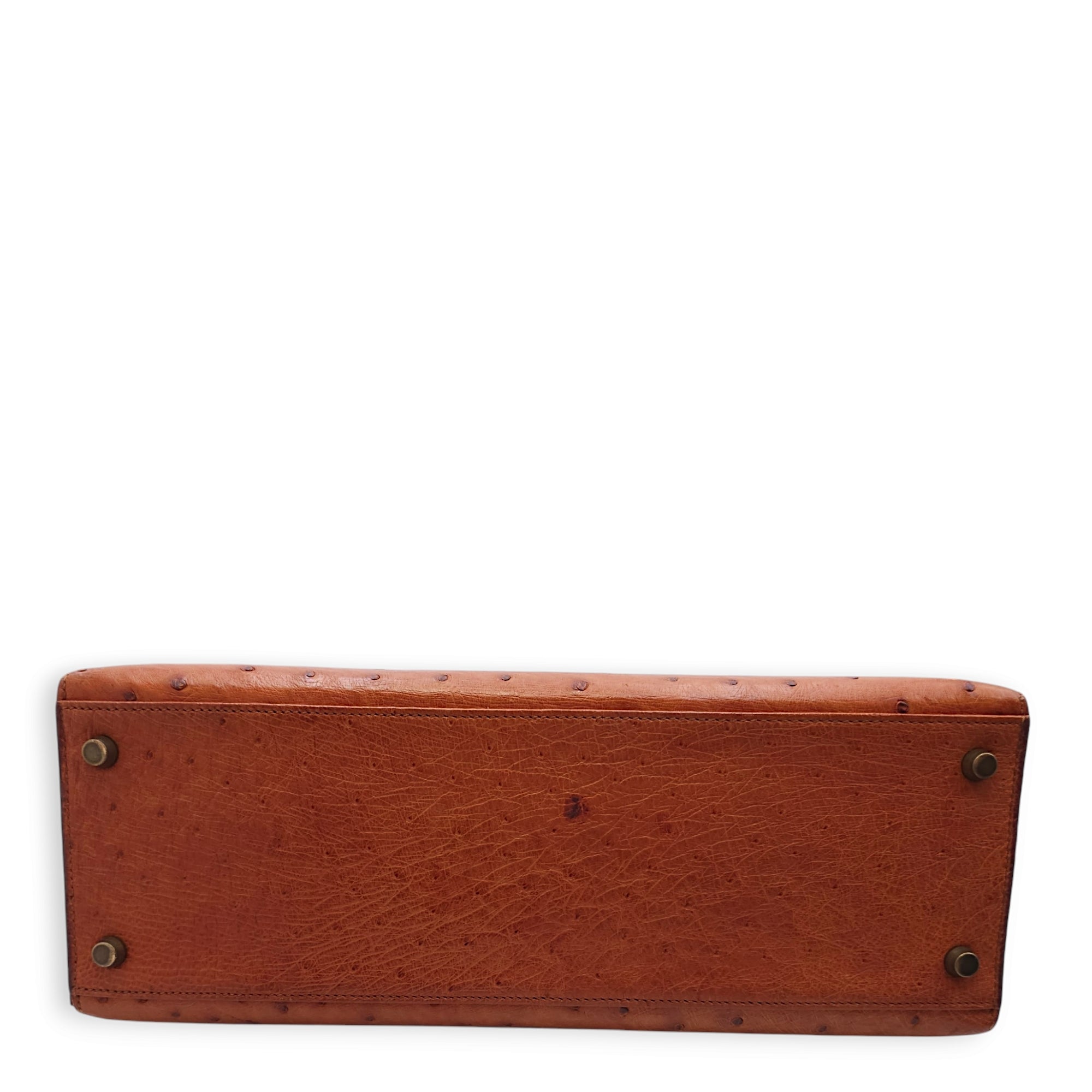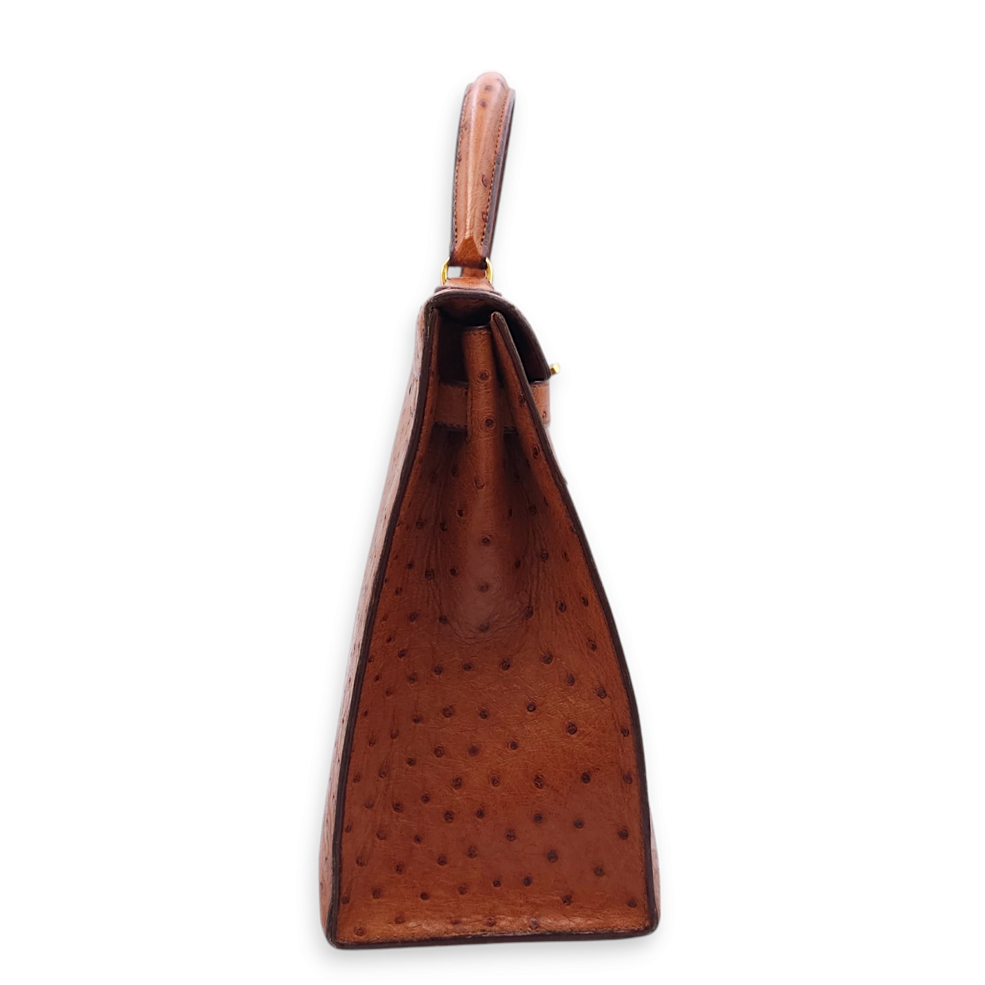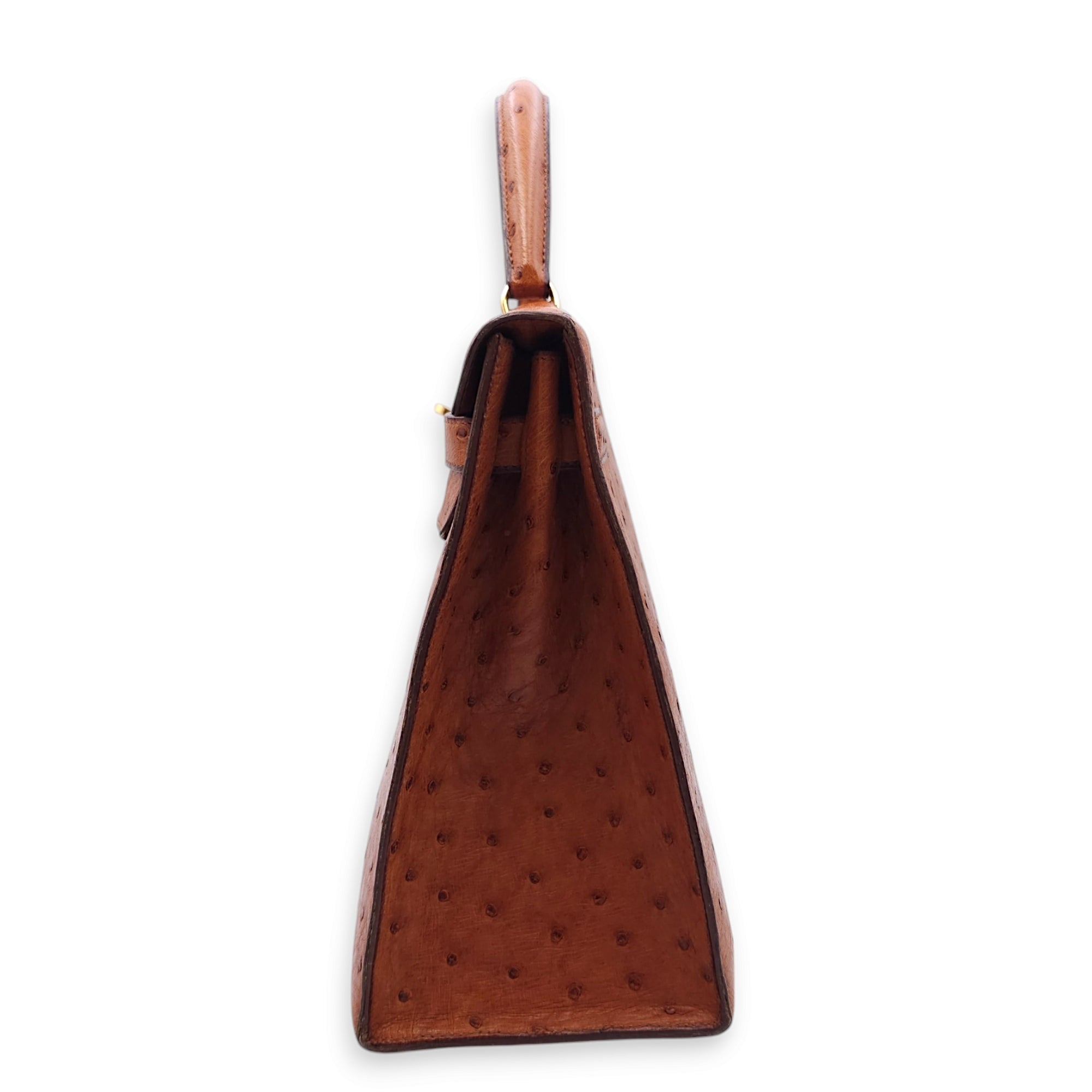 Sellier Kelly 32 Cognac in Ostrich, Gold hardware
