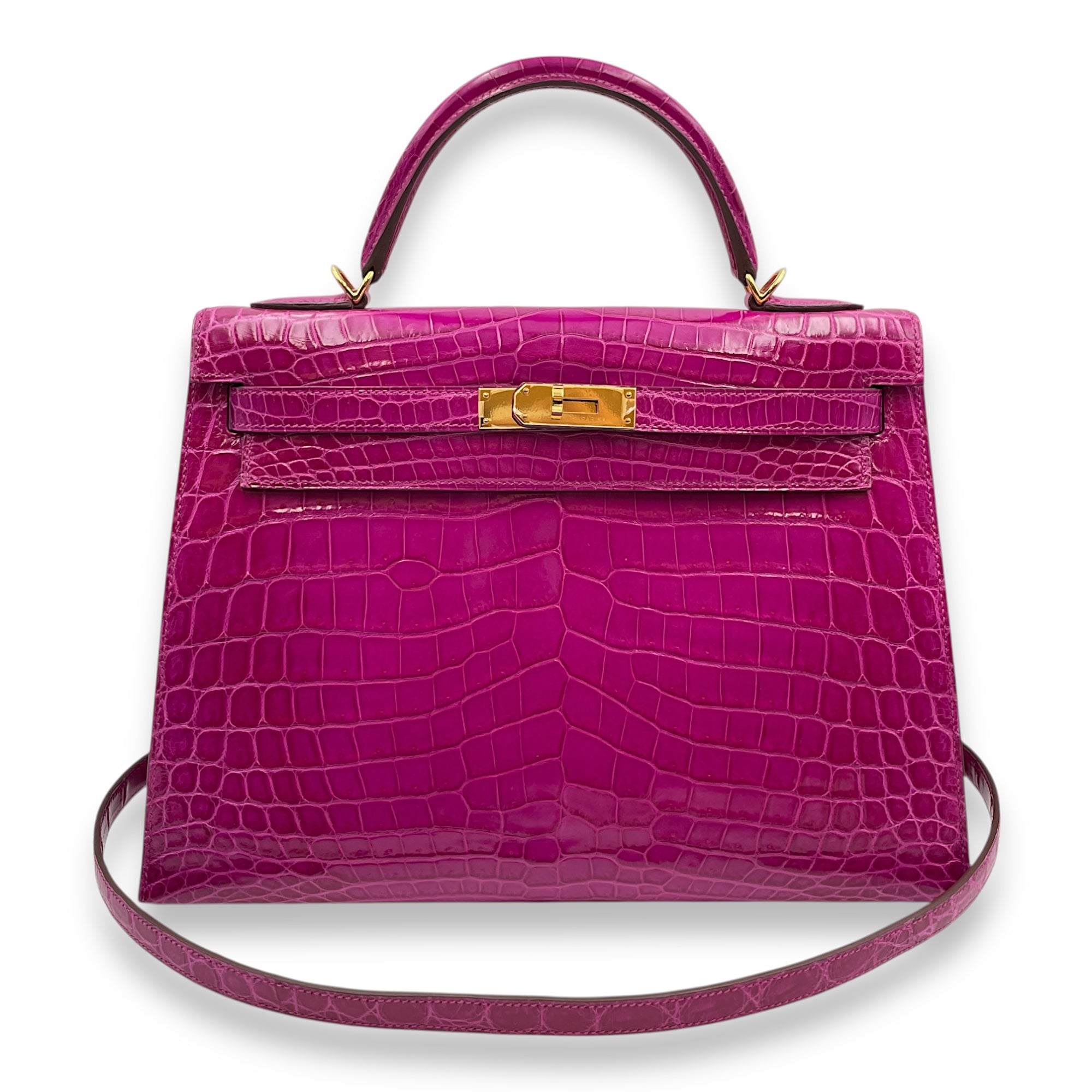 Sellier Kelly 32 Rose Sheherazade in Shiny Niloticus, Gold hardware