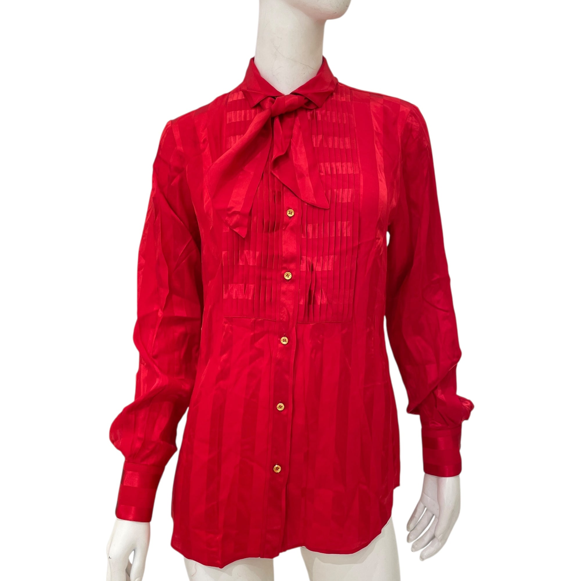 Striped Neck Scarf Detail Shirt 38 Red Ready-To-Wear in Silk, Gold hardware