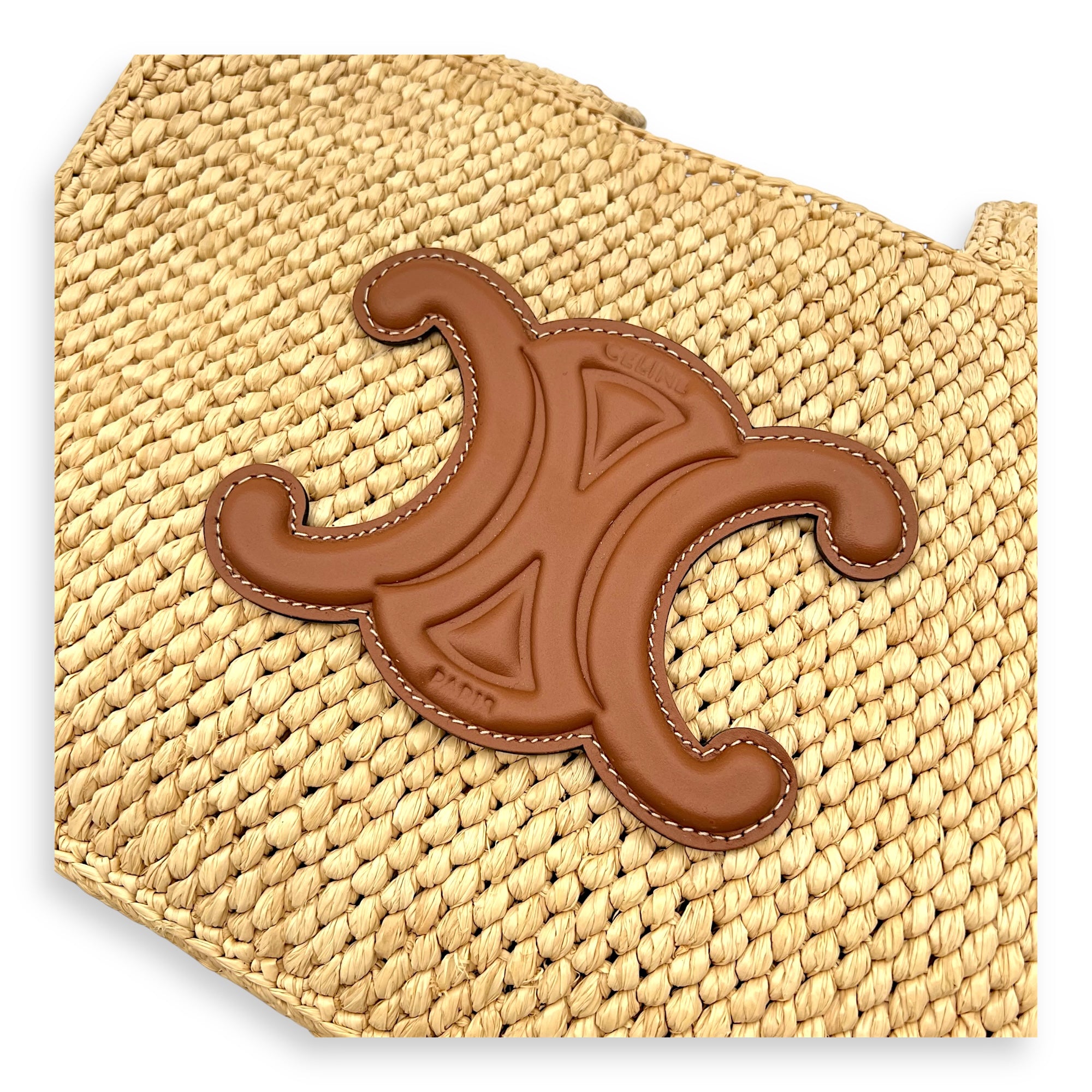 Triomphe Tote Bag Brown in Raffia, Gold hardware