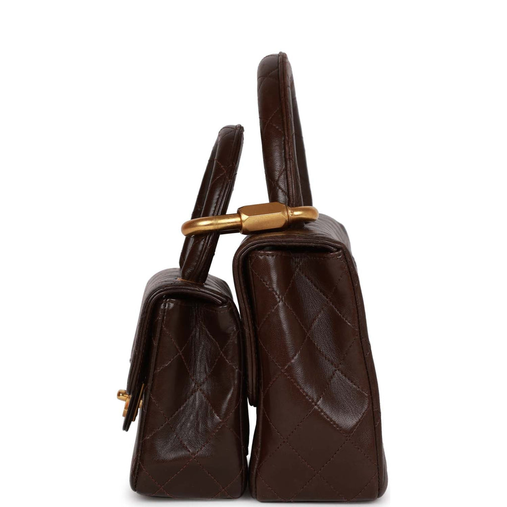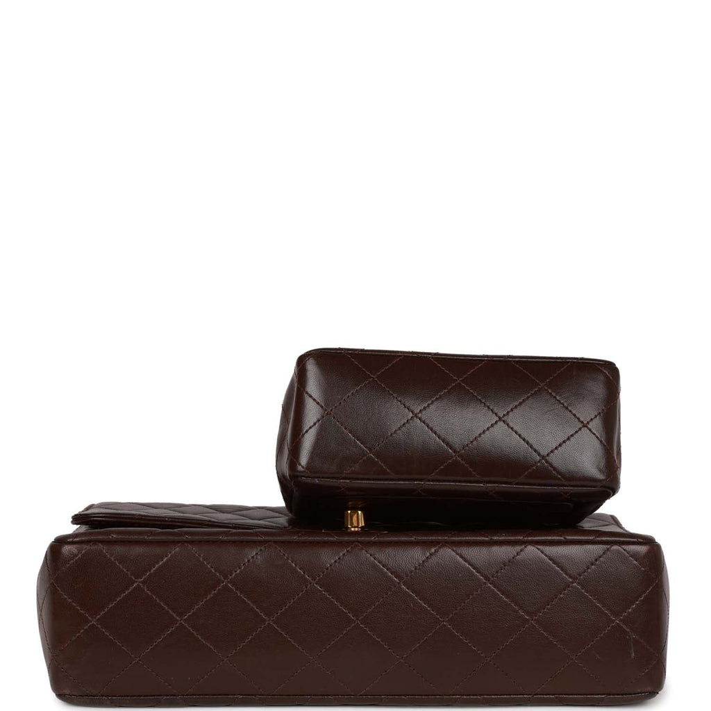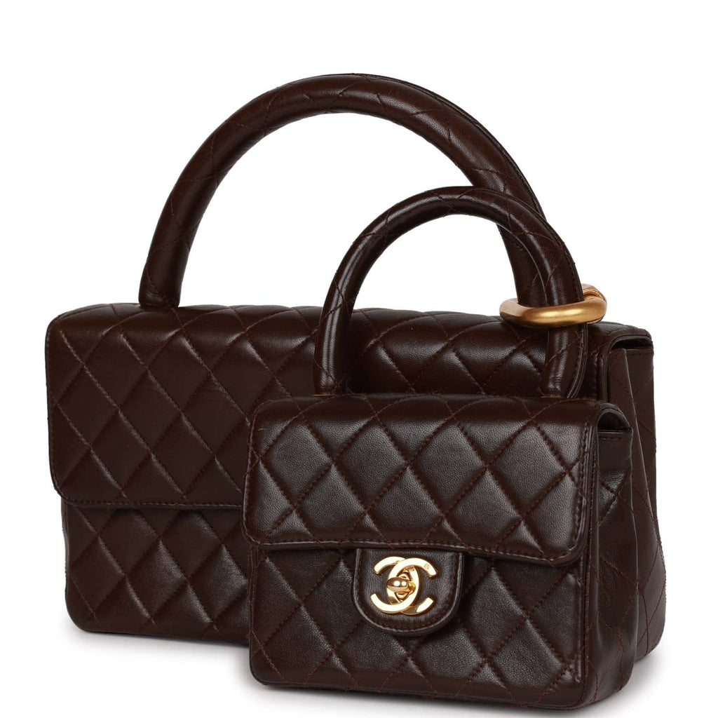 Vintage Chanel Kelly Parent and Child Flap Bag Set Brown Lambskin Gold Hardware Shop for an authentic vintage Chanel Kelly Flap Bag Set in Brown Lambskin with gold hardware in excellent condition at Madison Avenue Couture.