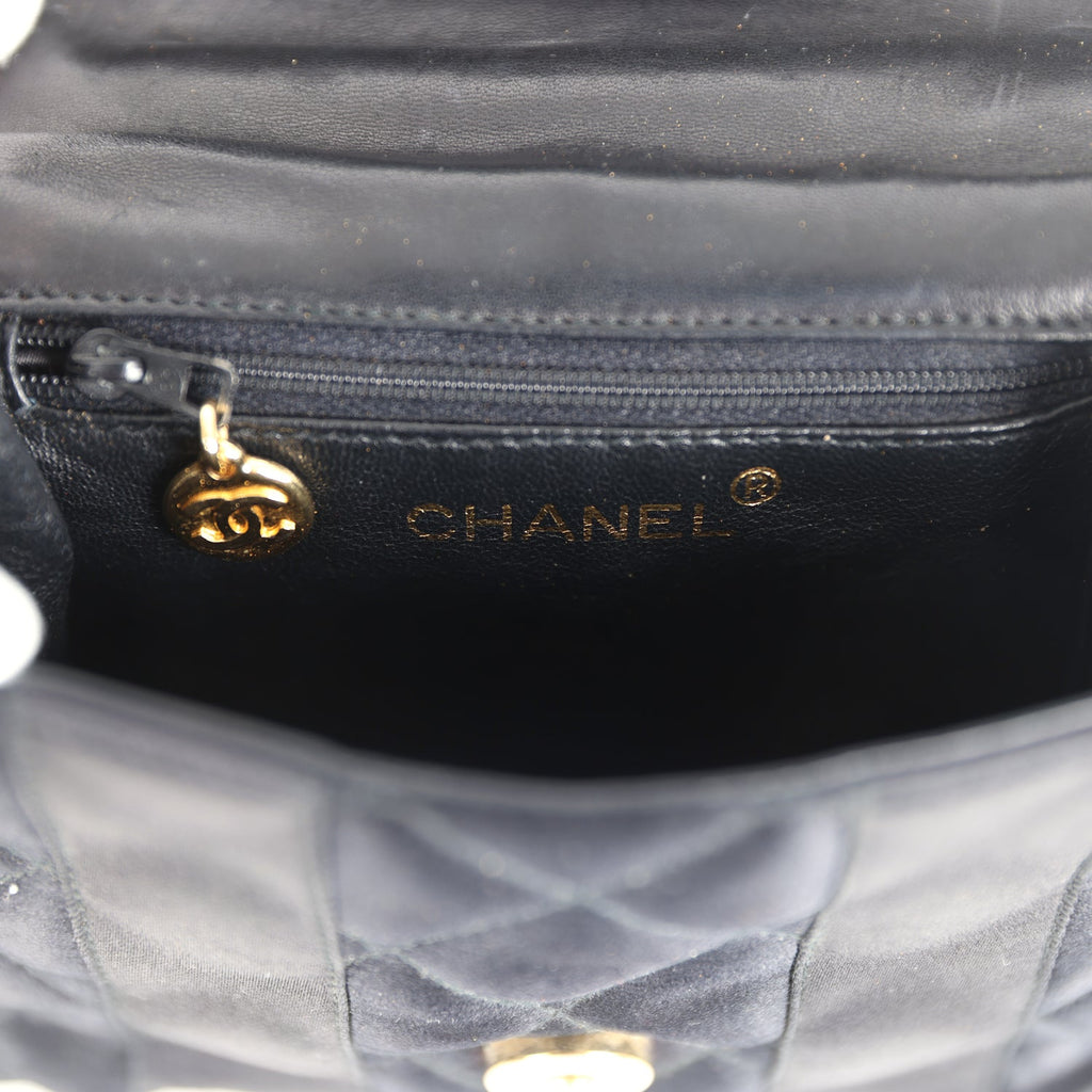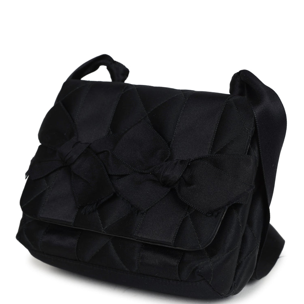 Vintage Chanel Mini Bow Shoulder Bag Black Satin Gold Hardware Shop for an authentic vintage Chanel Chanel Mini Bow shoulder bag in black satin with gold hardware in excellent to mint condition at Madison Avenue Couture.