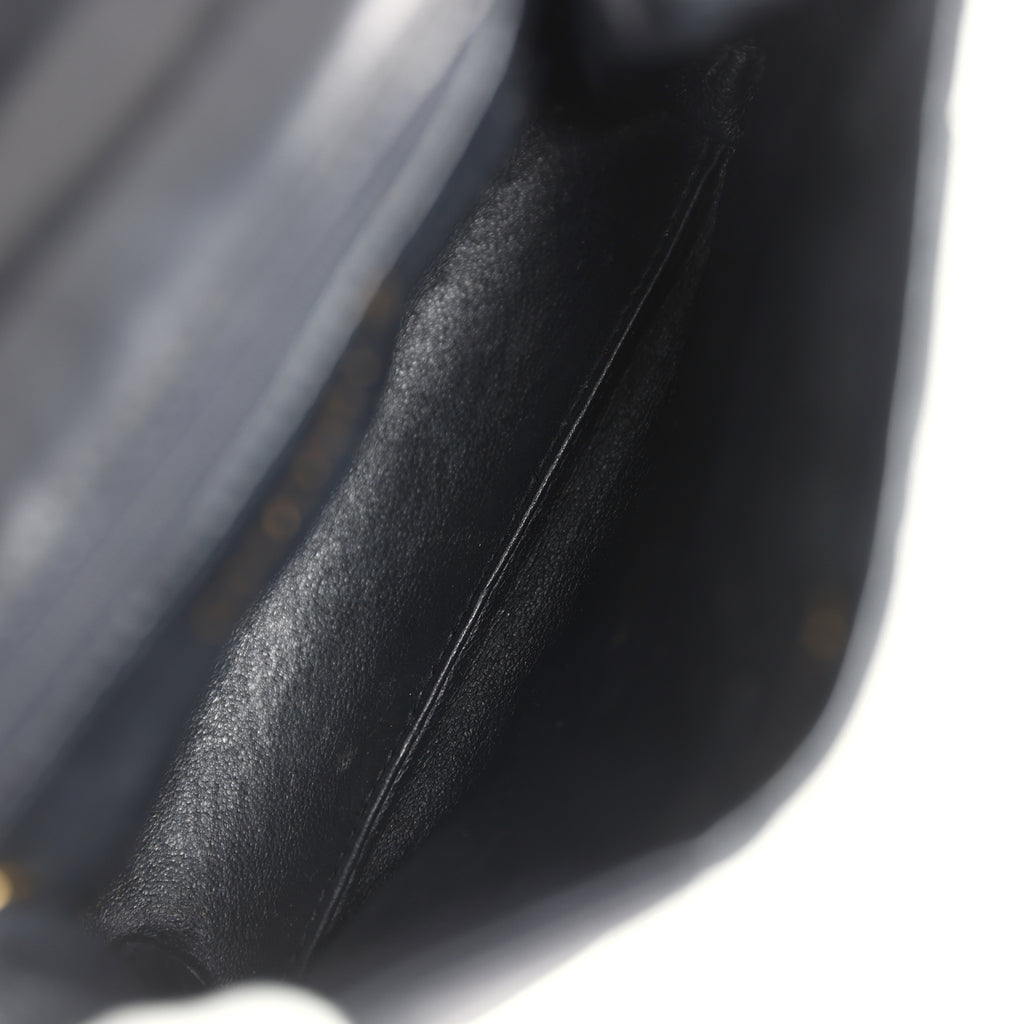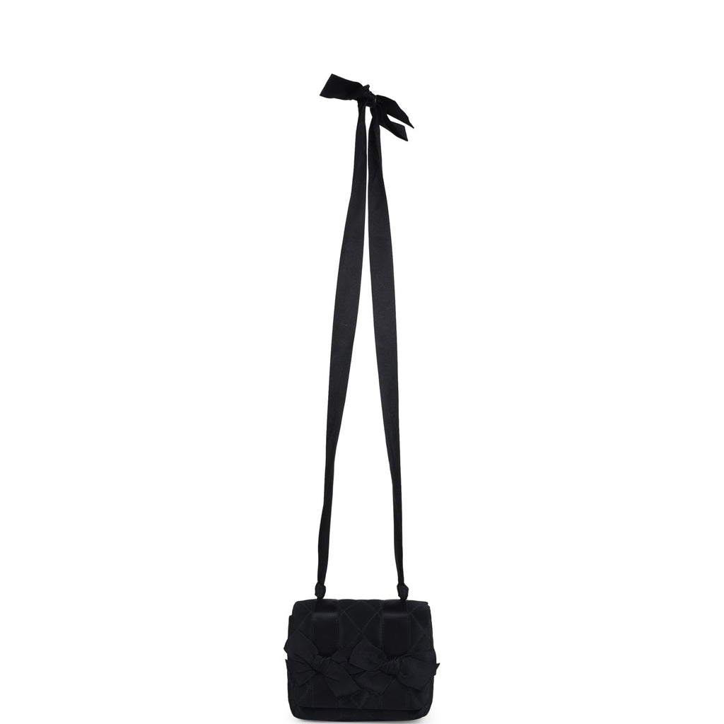 This vintage Chanel Mini Bow Shoulder Bag is in black satin fabric with gold hardware, featuring satin quilted fabric, two satin bows on the front flap, a magnetic snap closure, and a long black satin shoulder strap with a bow knot.The interior is lined in black leather with one zipper pocket with Chanel pull on the rear wall.Collection: 2- Series (1991-1994)Origin: FranceCondition: Vintage; Excellent to Mint – This bag is slightly relaxed in shape around the bottom corners. The exterior fabric is clean overall with minor rubbing to the satin on the bottom corners and the two front satin bows have minor edge fraying to the ends. The Bow knot also has some edge fraying. The interior leather has creasing and minor scuff marks to the flap leather and the interior.Accompanied by: vintage Chanel dustbagMeasurements: 5.5” width x 5.25″ height x 2.5″ depth; 22.5″ strap drop