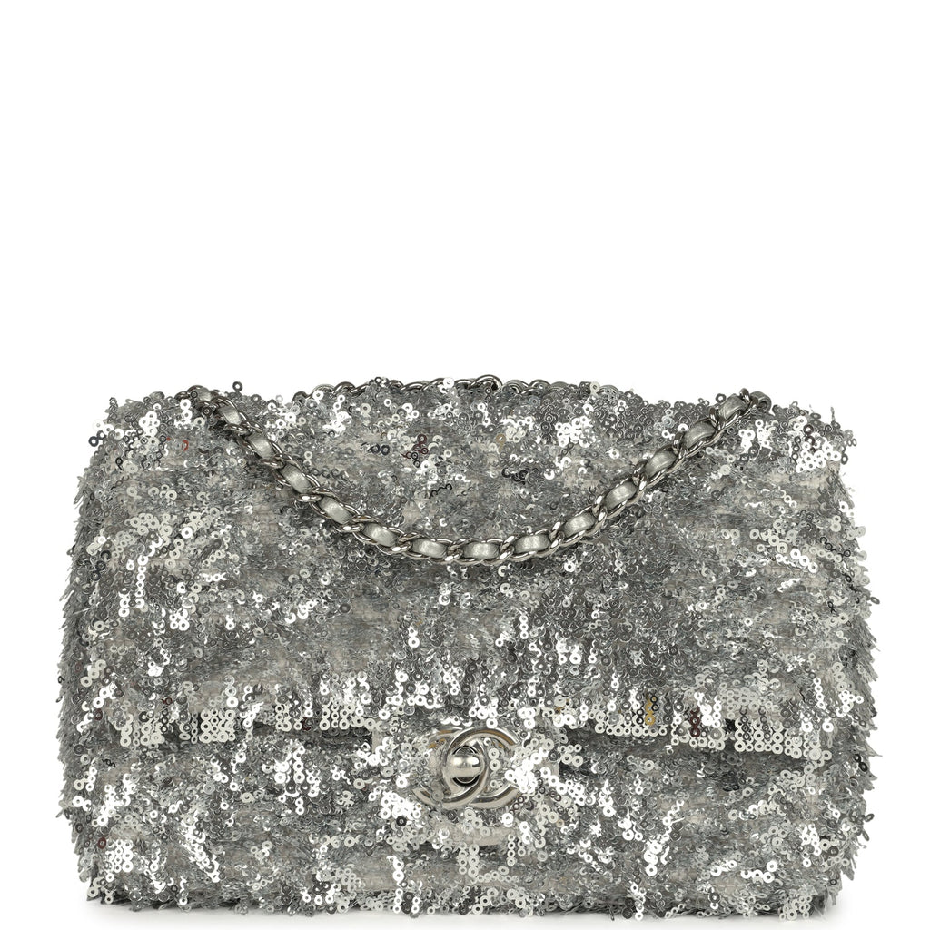 Chanel Mini Rectangular Fringe Flap Bag Silver Sequin Silver Hardware